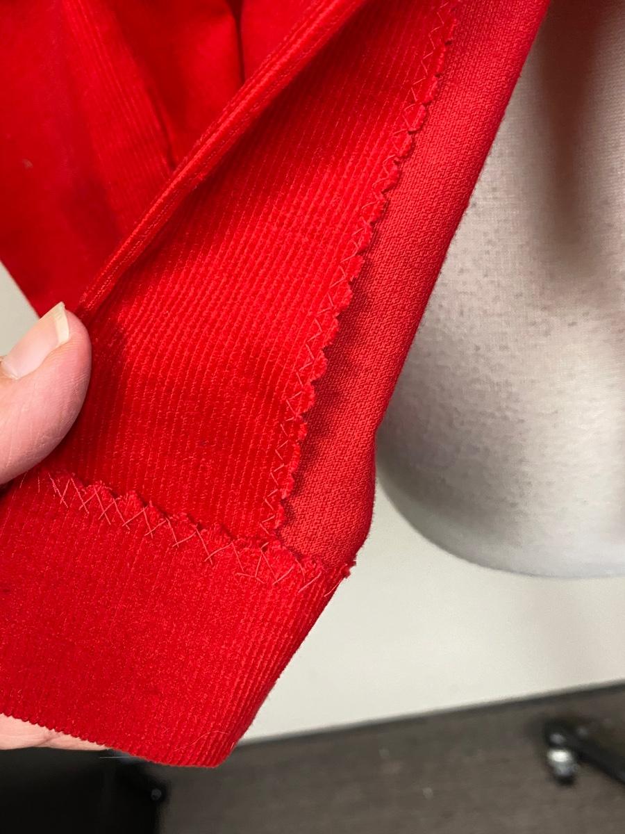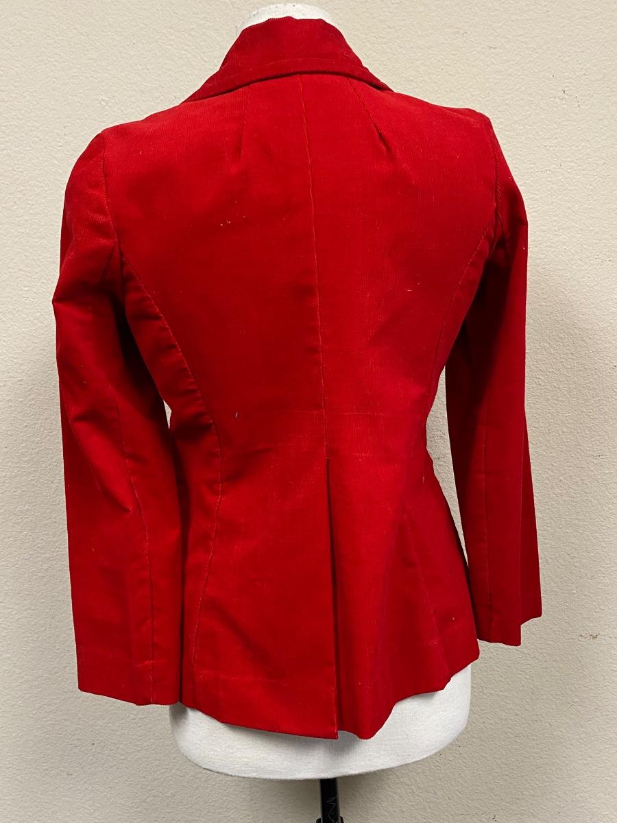 Vintage Retro Homemade Red Corduroy Blazer Fitted Suit Jacket Blouse Top. The stitching inside makes it look homemade, nicely done. In good condition. About size medium.