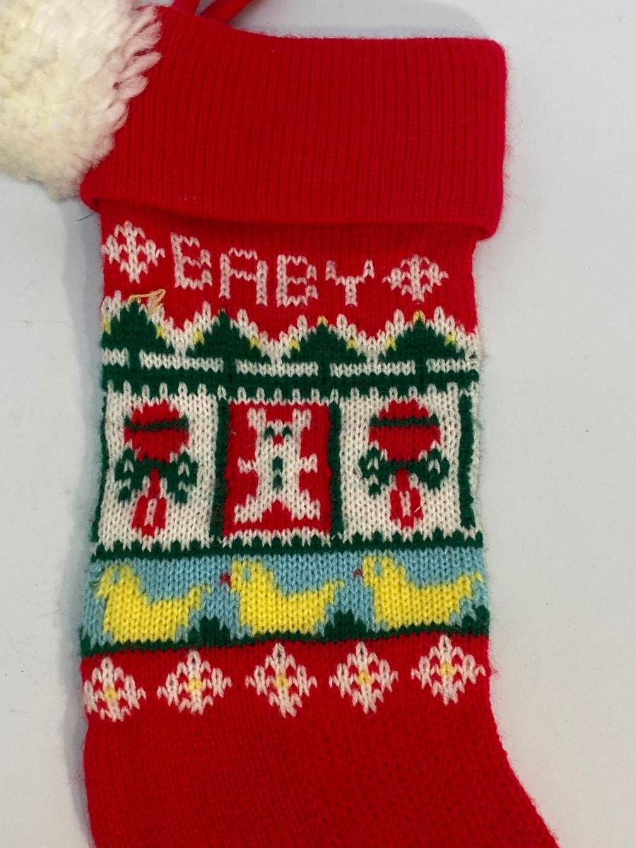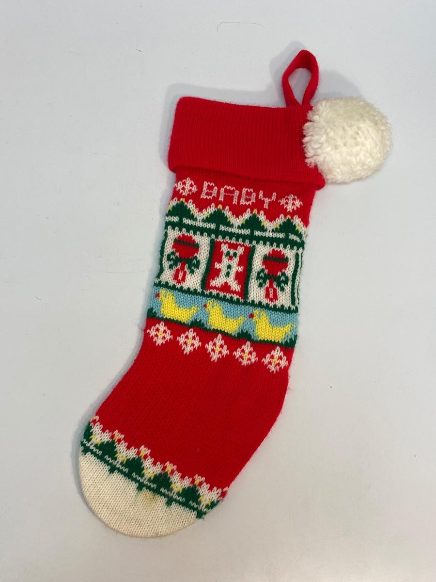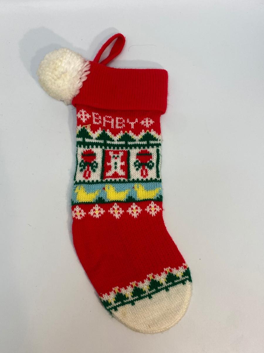 Vintage Retro Knit Baby Christmas Holiday Stocking