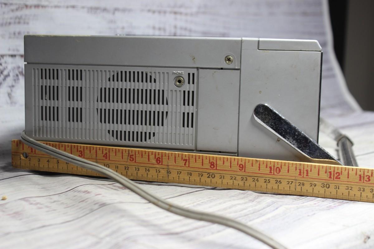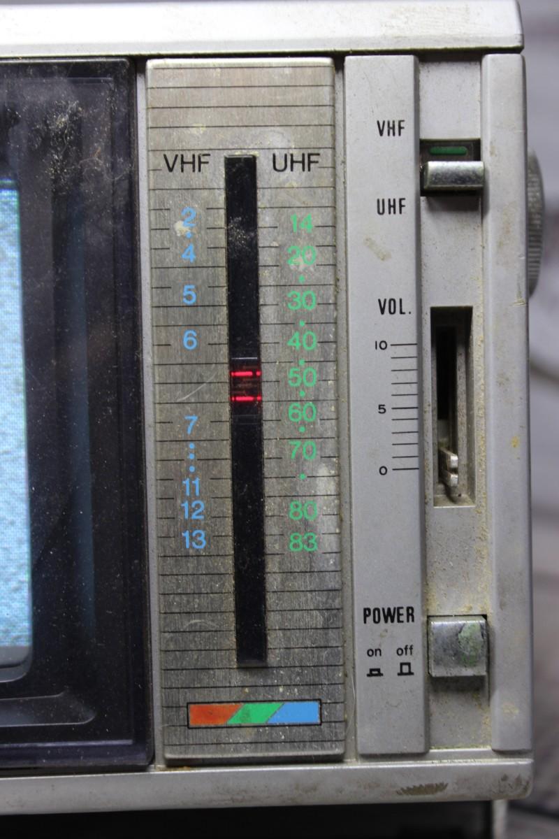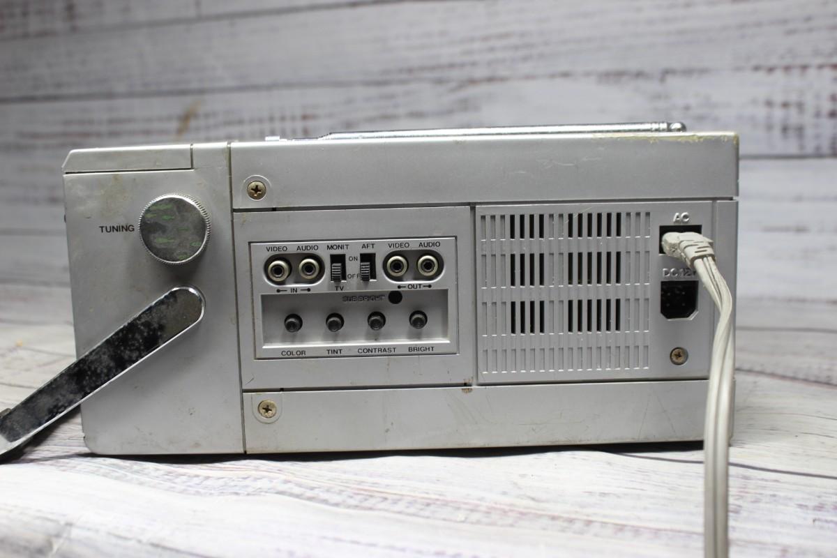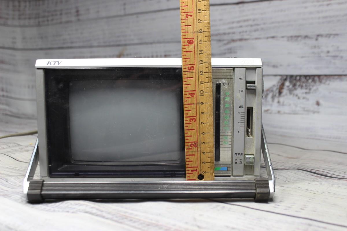 Vintage Retro KTV Portable Color TV Model KCT-5003, the stand is wobbly and it sounds like something is loose or free inside the television when handled. Overall there is no significant damage and is in fair condition, turns on when plugged in. Good for retro gaming, video/audio outputs have not been tested. Check pictures for more details and for sizing.