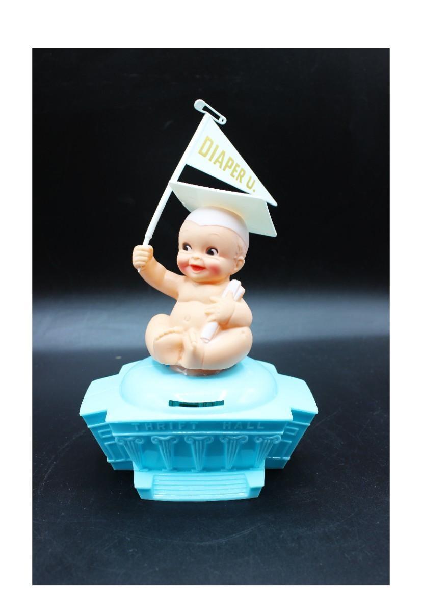 Vintage Retro Plastic Graduation Baby Thrift Hall Coin Bank, there is no significant damage to the plastic coin bank and is in good condition. Check pictures for more details and for sizing, there is already a $5 bill inside the coin bank.
