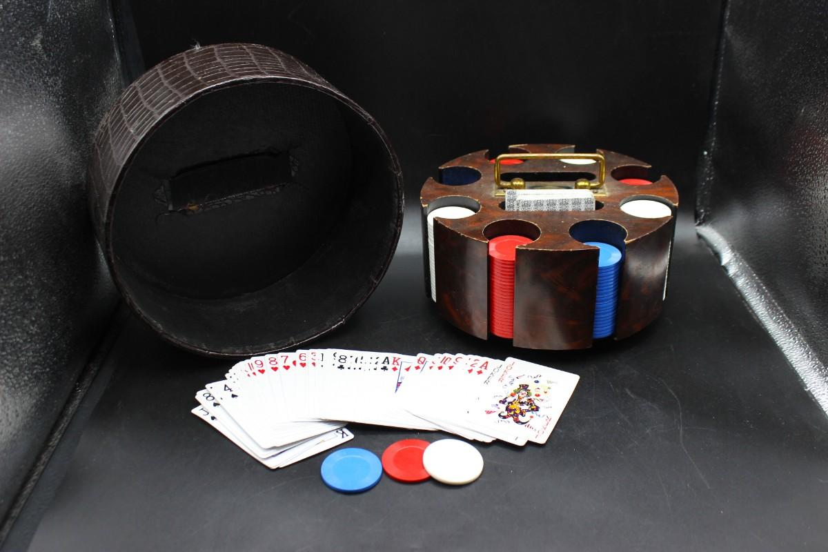 Vintage Retro Poker Night Chip and Card Caddy Set