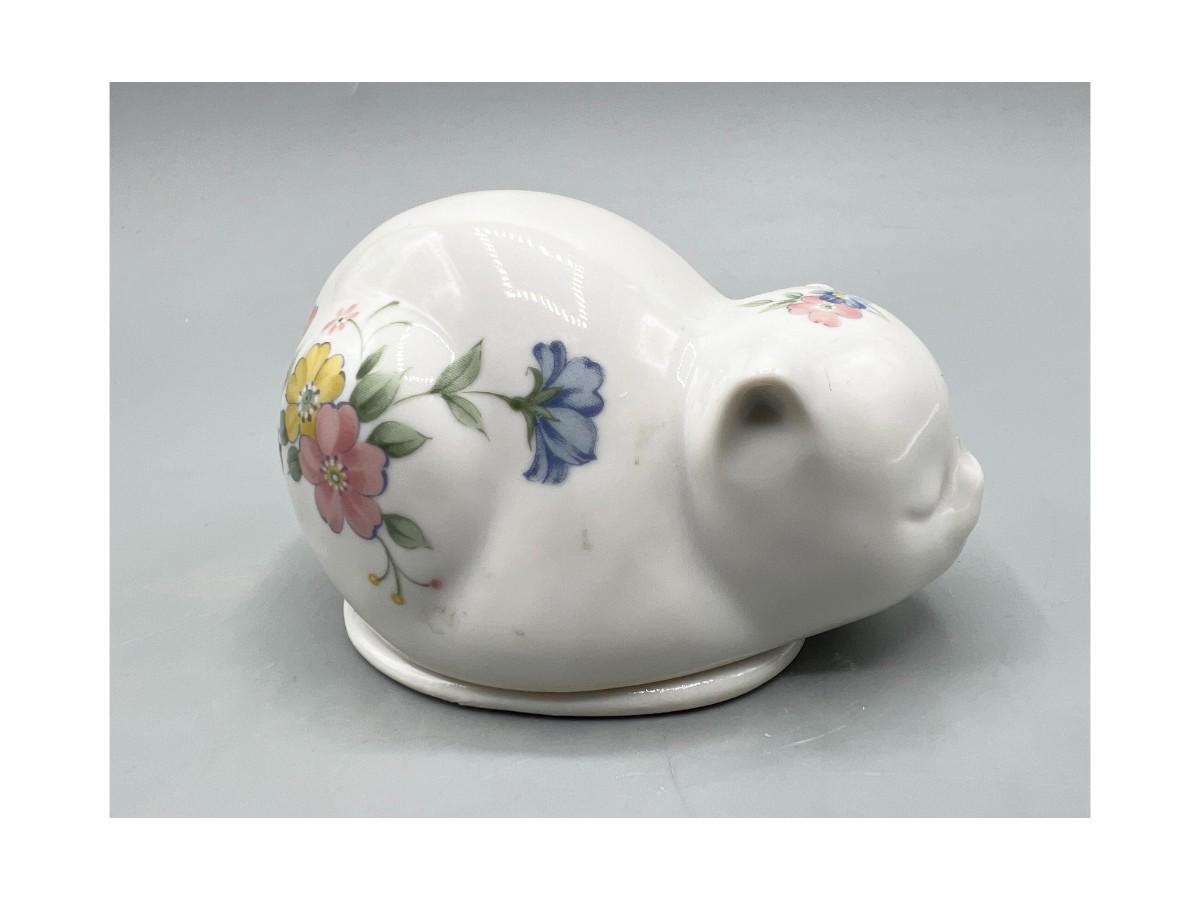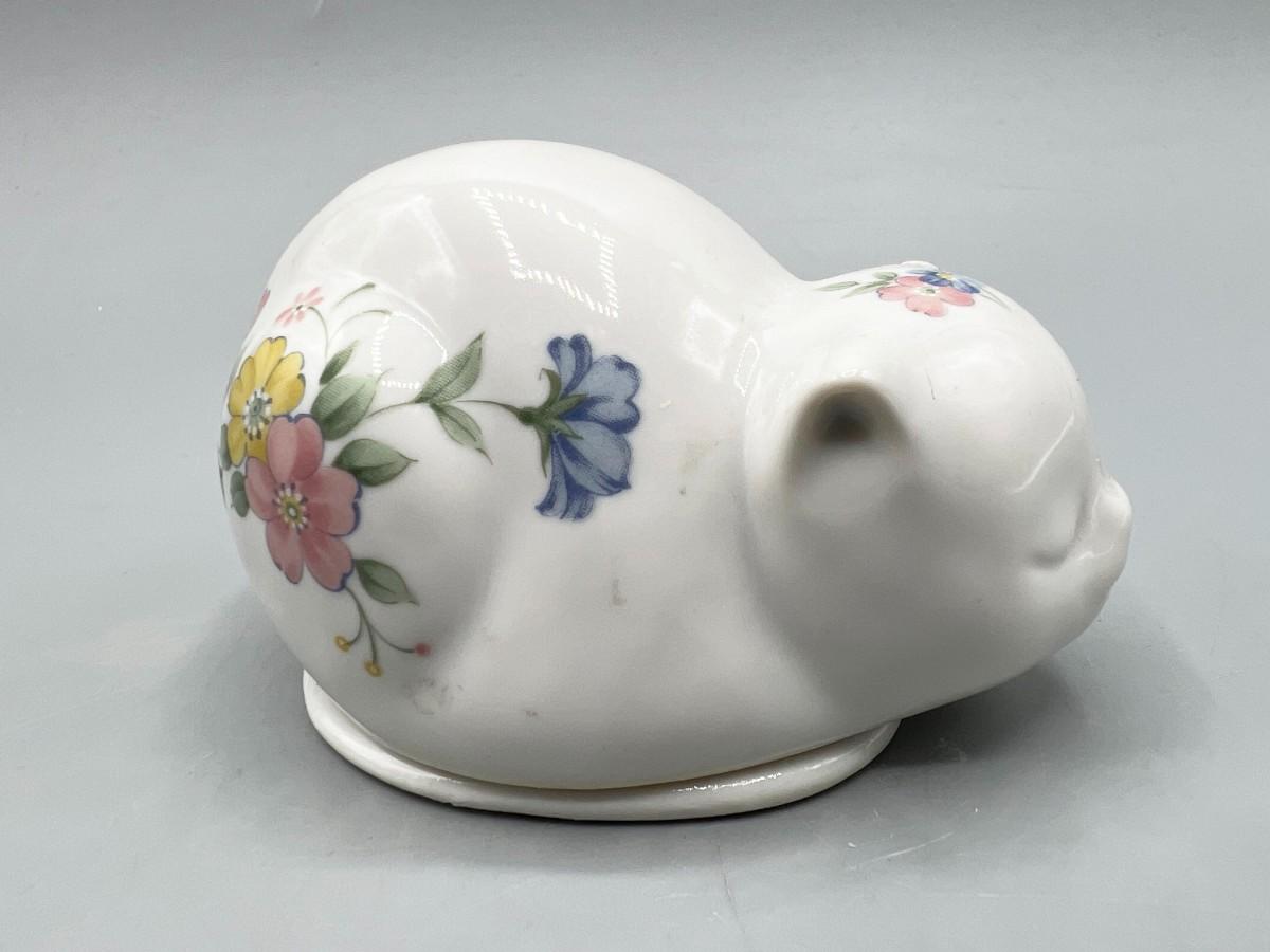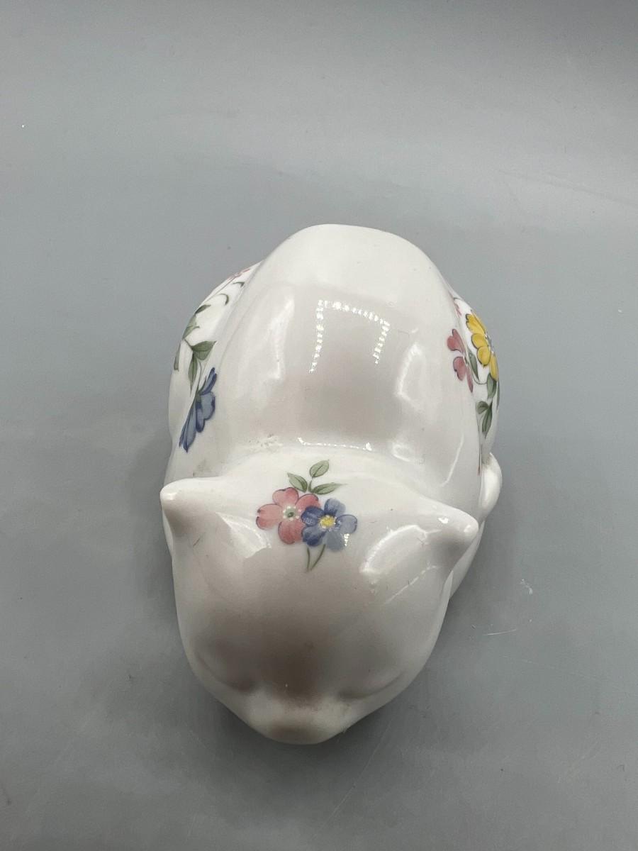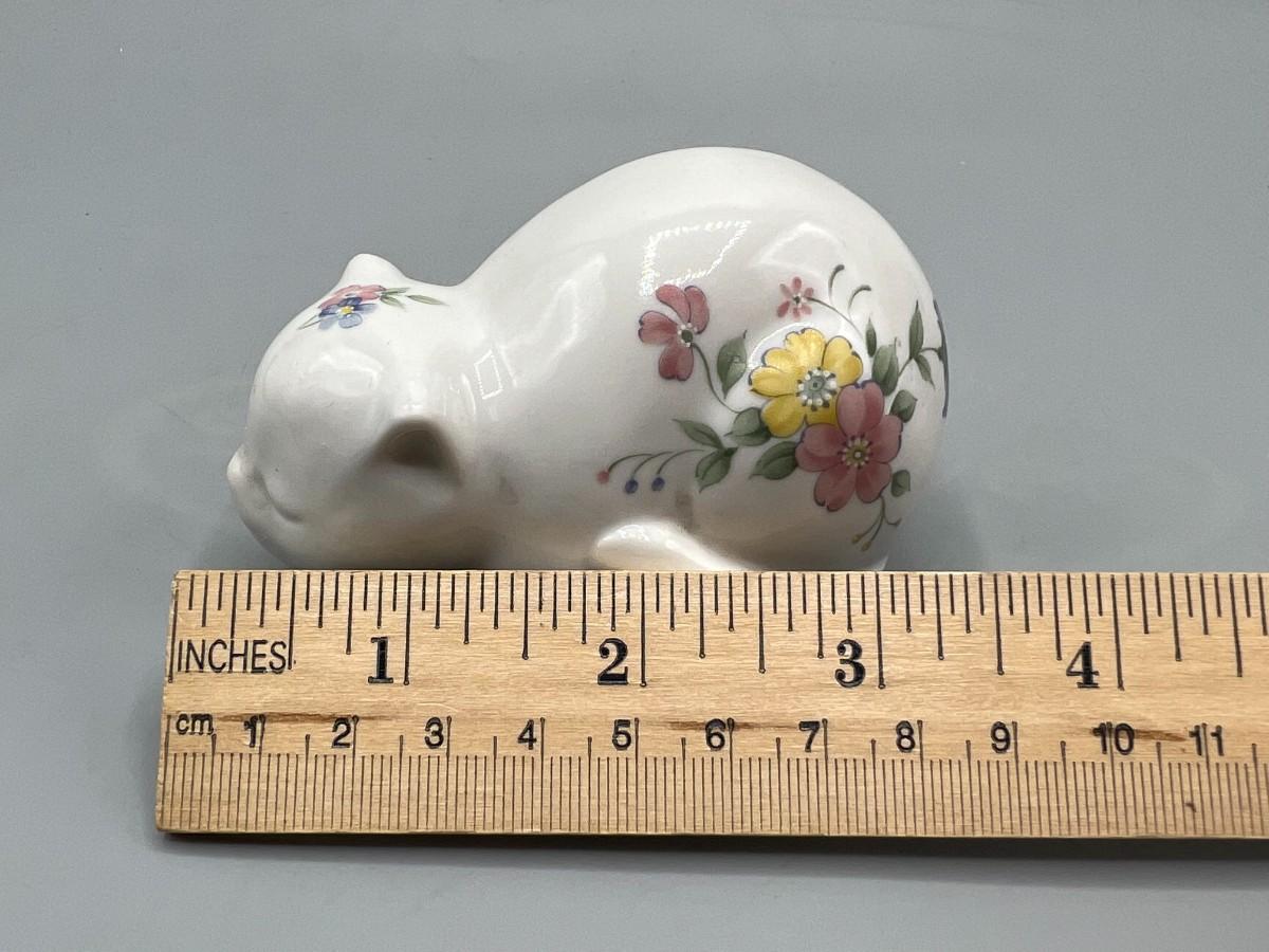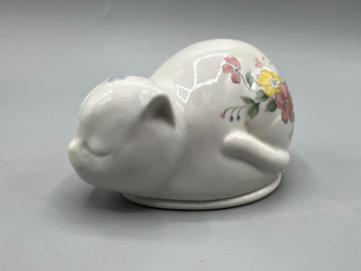 Vintage Retro Porcelain Cat Trinket Dish with Flower Design. About 3" size.