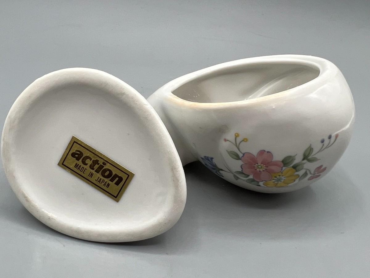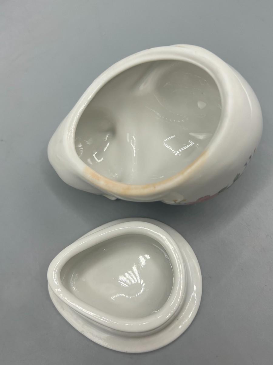 Vintage Retro Porcelain Cat Trinket Dish with Flower Design