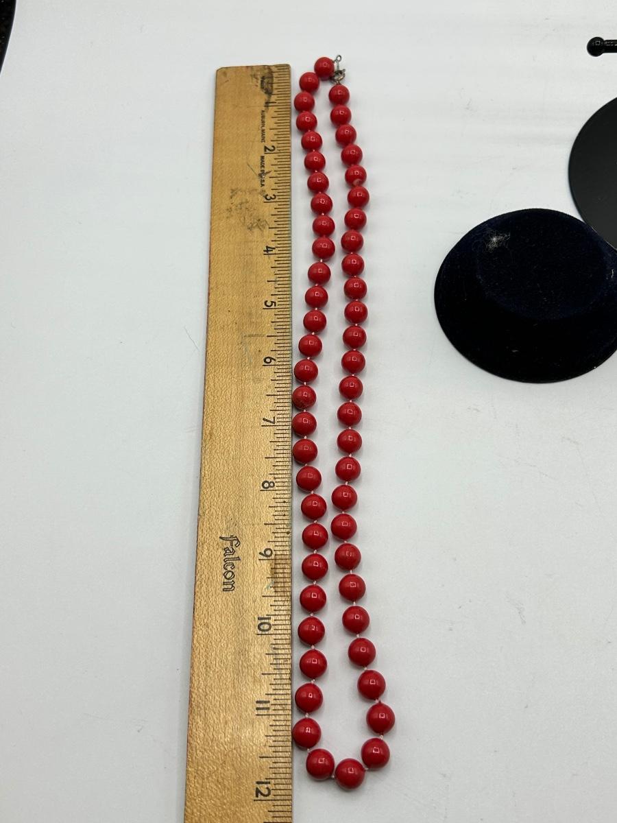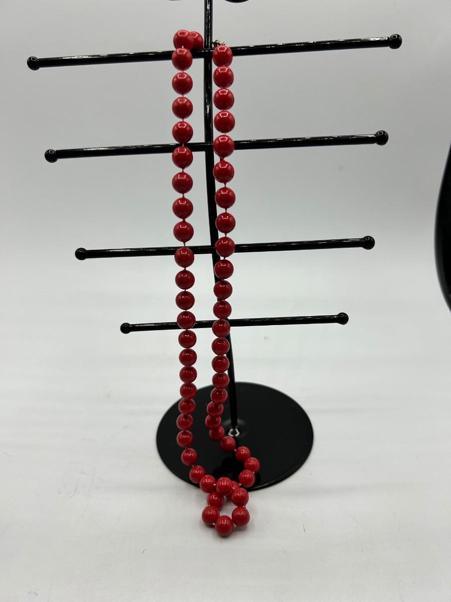 Vintage Retro Red Single Strand Plastic Bead Necklace