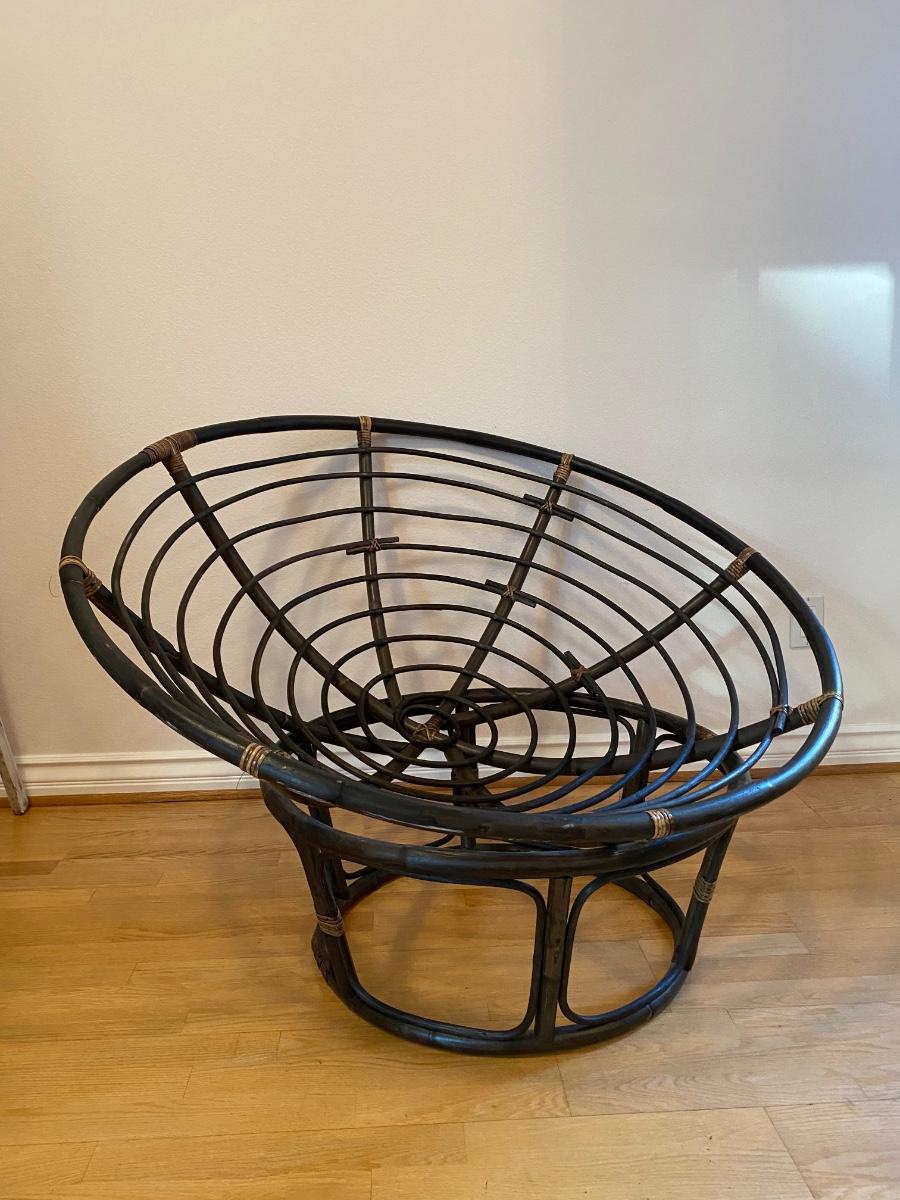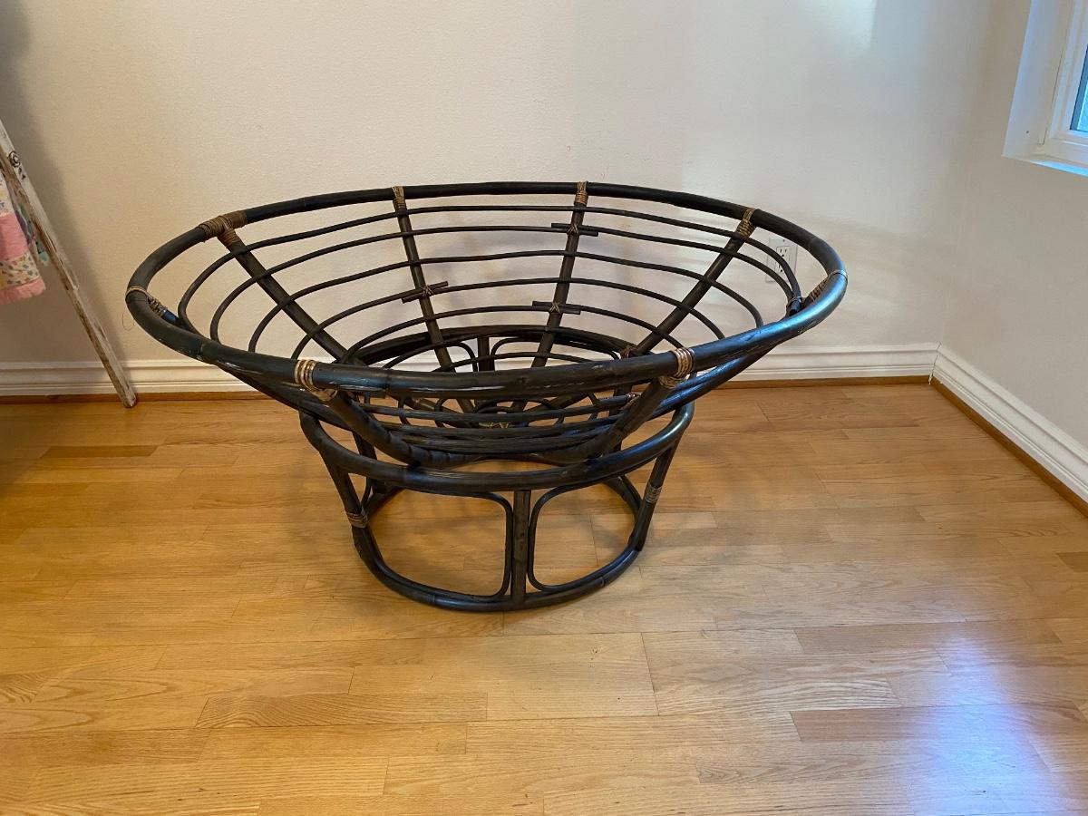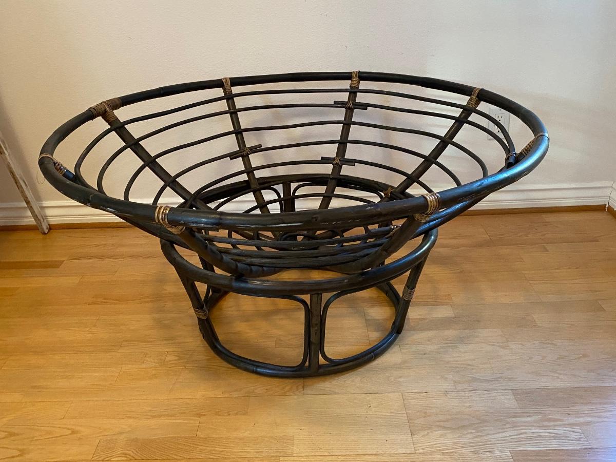 Vintage dark finish papasan lounge chair frame. Round chair frame with base. In good condition, just needs a cushion.