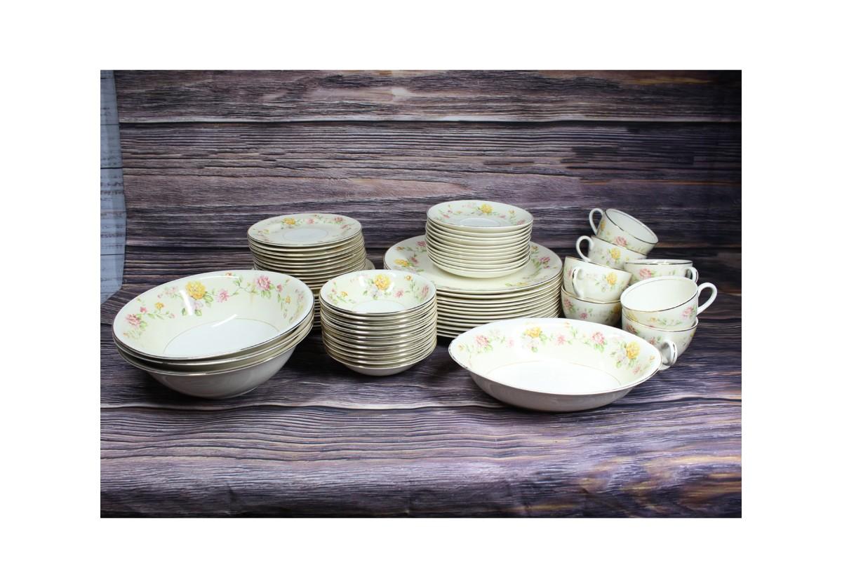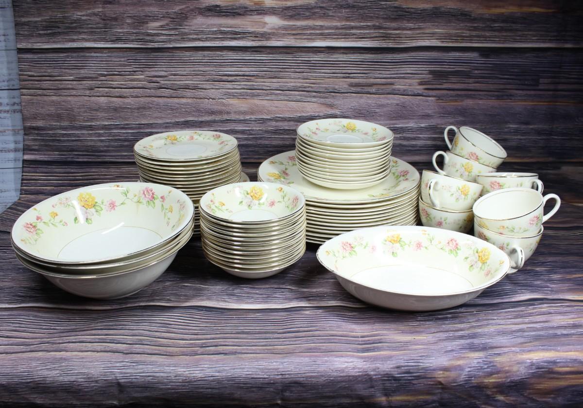 Vintage Retro Set of Eggshell Flower Pattern Nautilus Tea Serving Dishware, there is some slight chipping on some pieces, but most of the dishware is in good vintage condition. Check pictures for more details and for sizing, comes with the following: