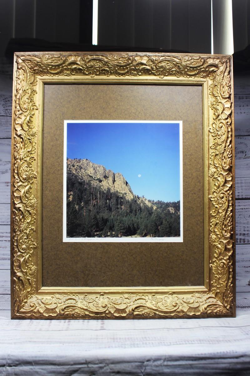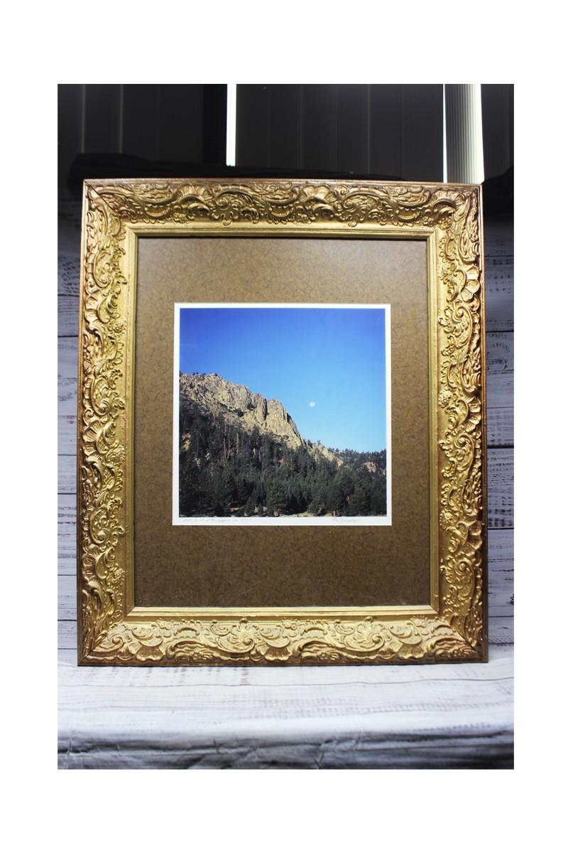 Vintage Retro Signed and Framed Nature Photograph of Bridgeport California Cliff with Moon