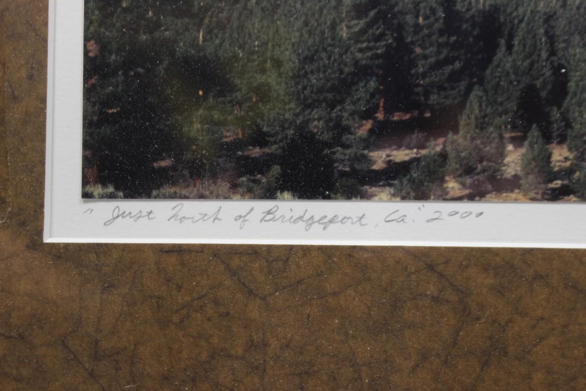 Vintage Retro Signed and Framed Nature Photograph of Bridgeport California Cliff with Moon, there are no cracks or chips to the frame or protective glass and is in good condition. The title reads "Just North of Bridgeport, CA" 2000 and then the photographers signature. Check pictures for more details and for sizing.