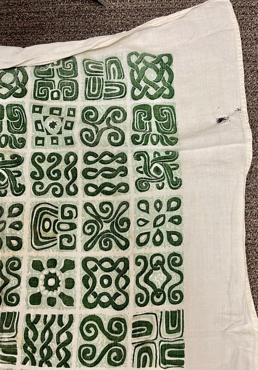 Vintage Retro Tablecloth Hawaiian green / white  Print poor condition