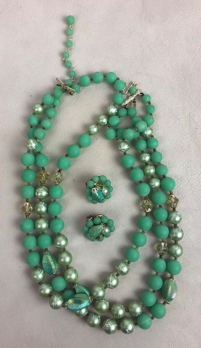 Vintage retro TRIPLE STRAND COCKTAIL NECKLACE & EARRINGS SET JAPAN 1960s