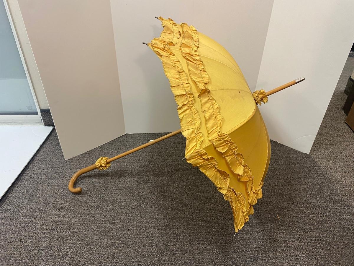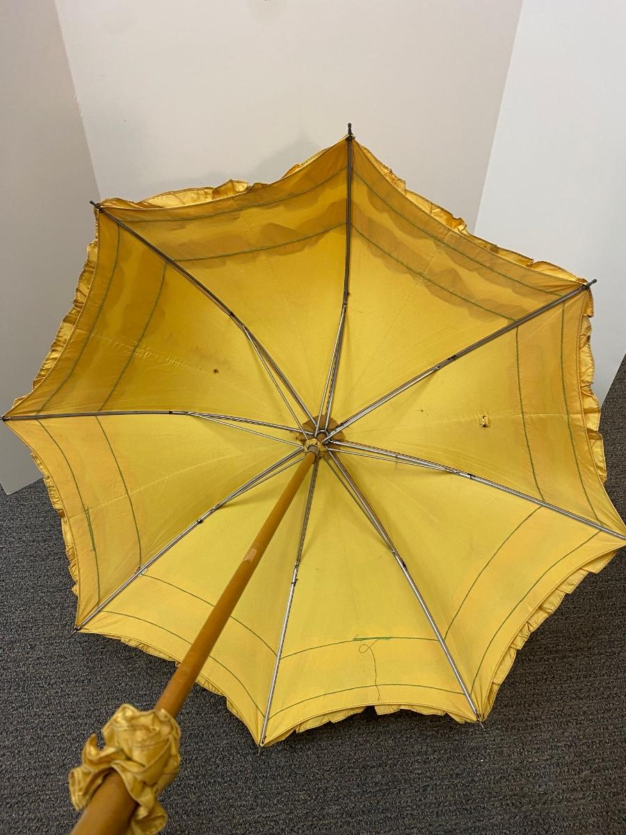 Vintage Retro Yellow Gold Ruffled Nylon Parasol Umbrella