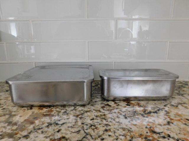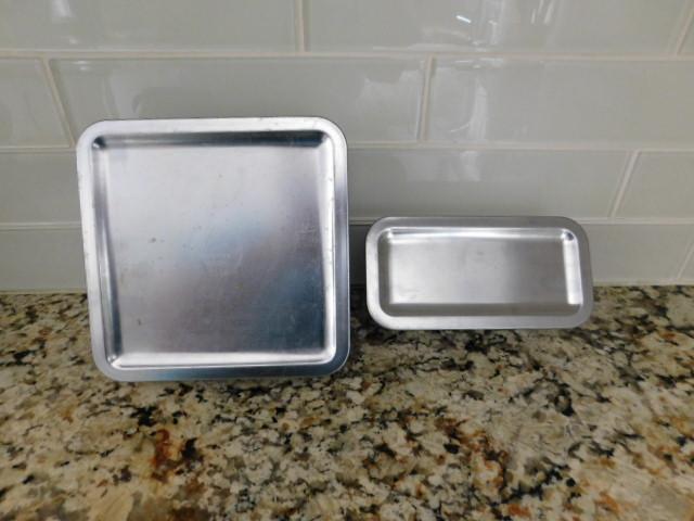 Set of 2. Complete with lids. One is 8 inches square, the other is 8 inches by 4 inches.