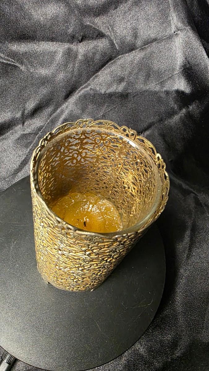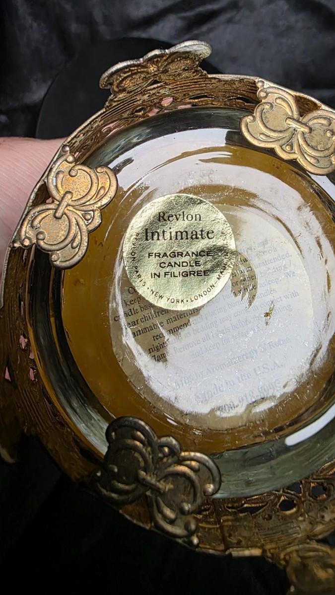 Vintage Revlon “Intimate” Fragrance Candle in Ornate Gold Filigree Holder – Hollywood Regency Style