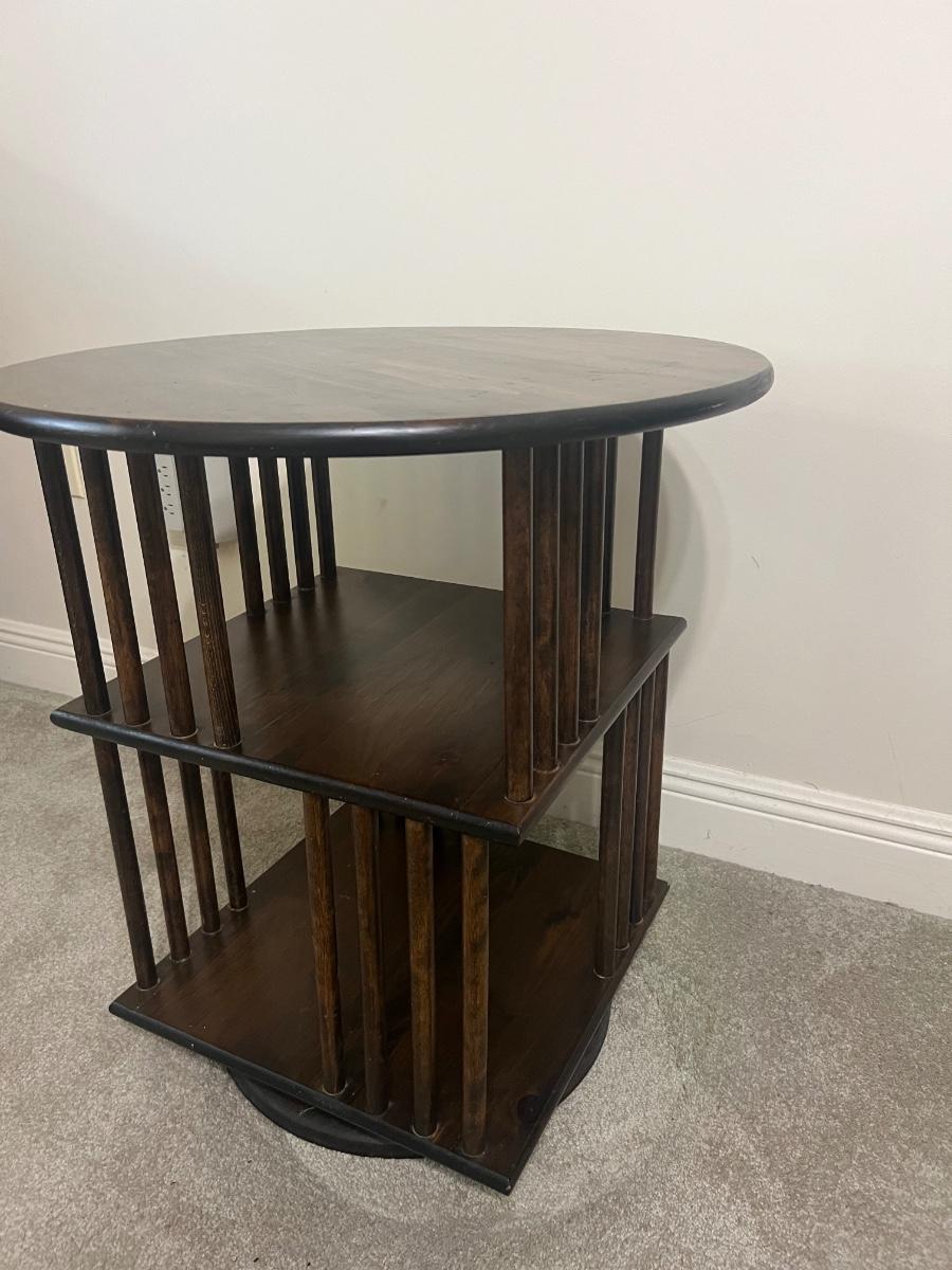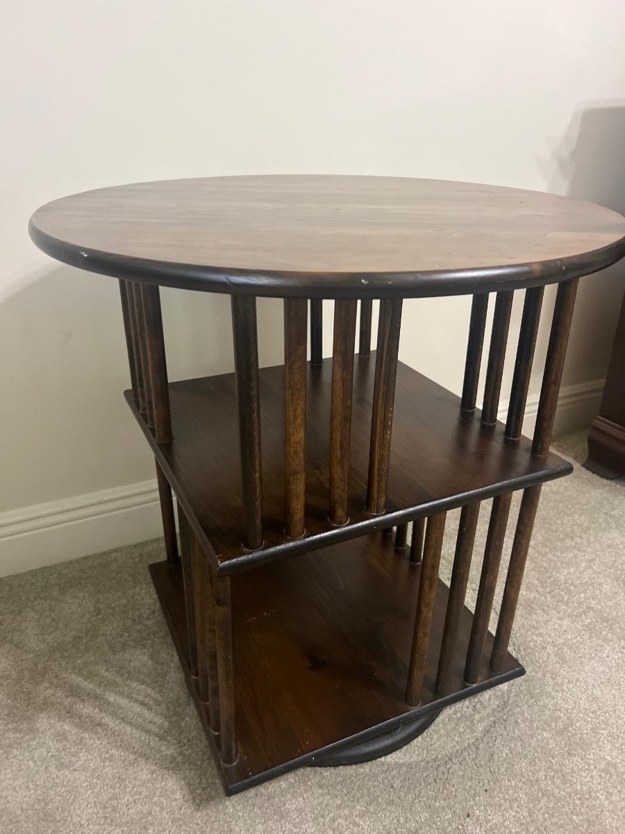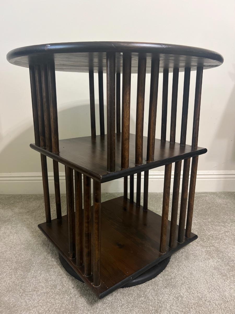 Beautiful Solid wood, Vintage Revolving Bookcase Table. Table actually turns.