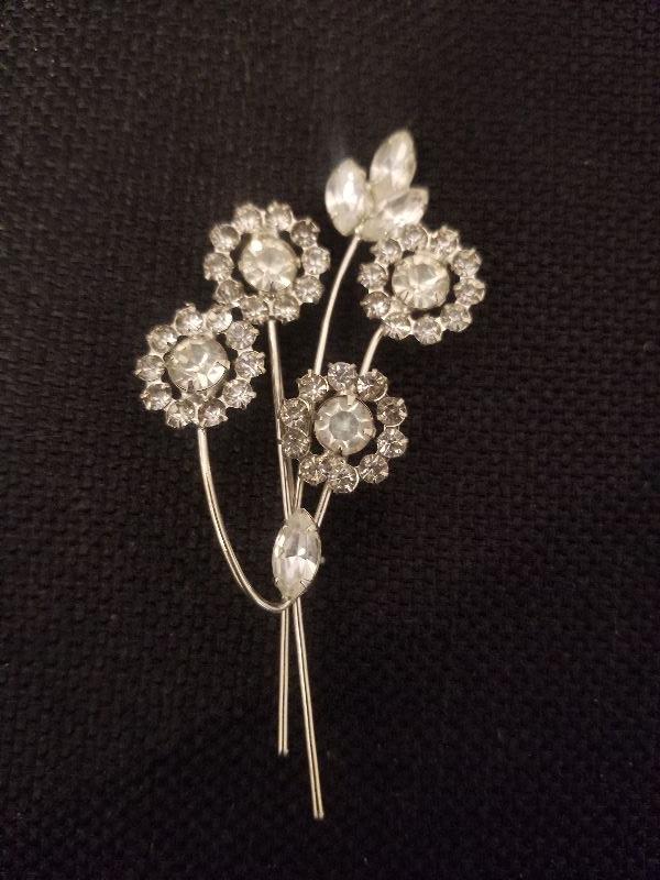 Vintage Rhinestone Broach Flowers NICE - No Stamp - #125-A