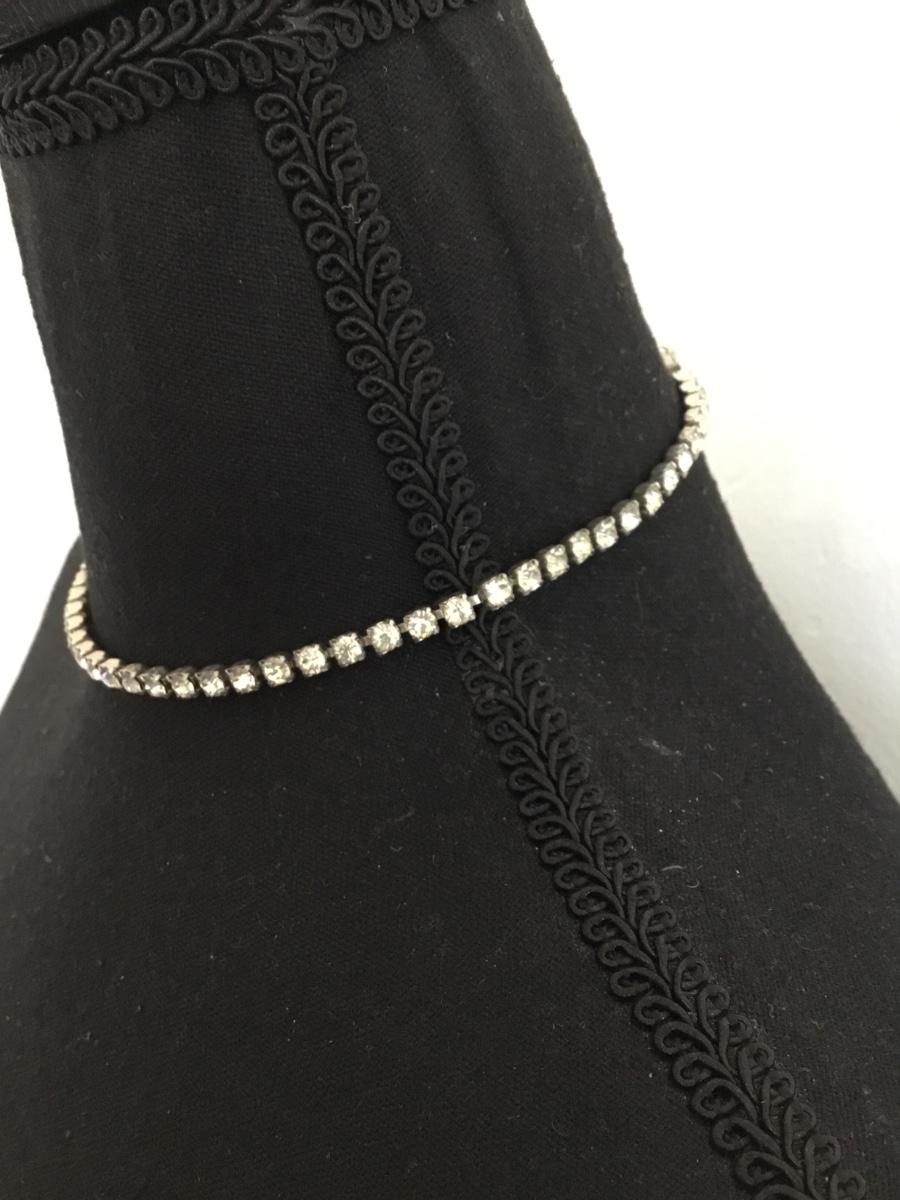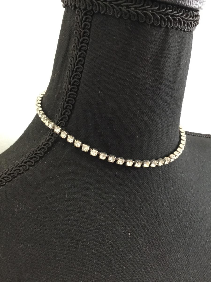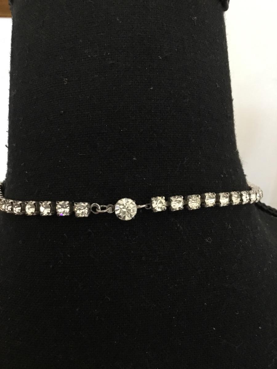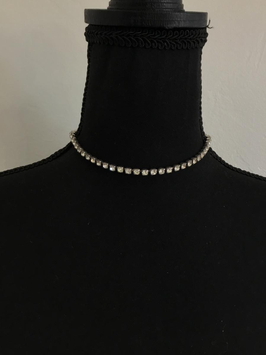 Vintage, rhinestone, choker, necklace, silver toned
