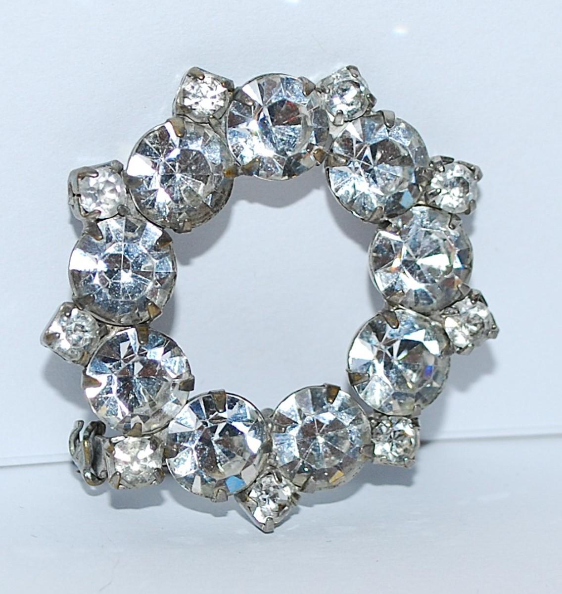 Vintage Rhinestone Circle BROOCH (1¼" Diam.) with Silver Tone Clasp