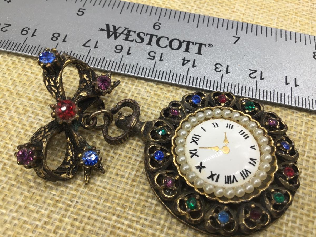 Vintage Rhinestone Clock Brooch