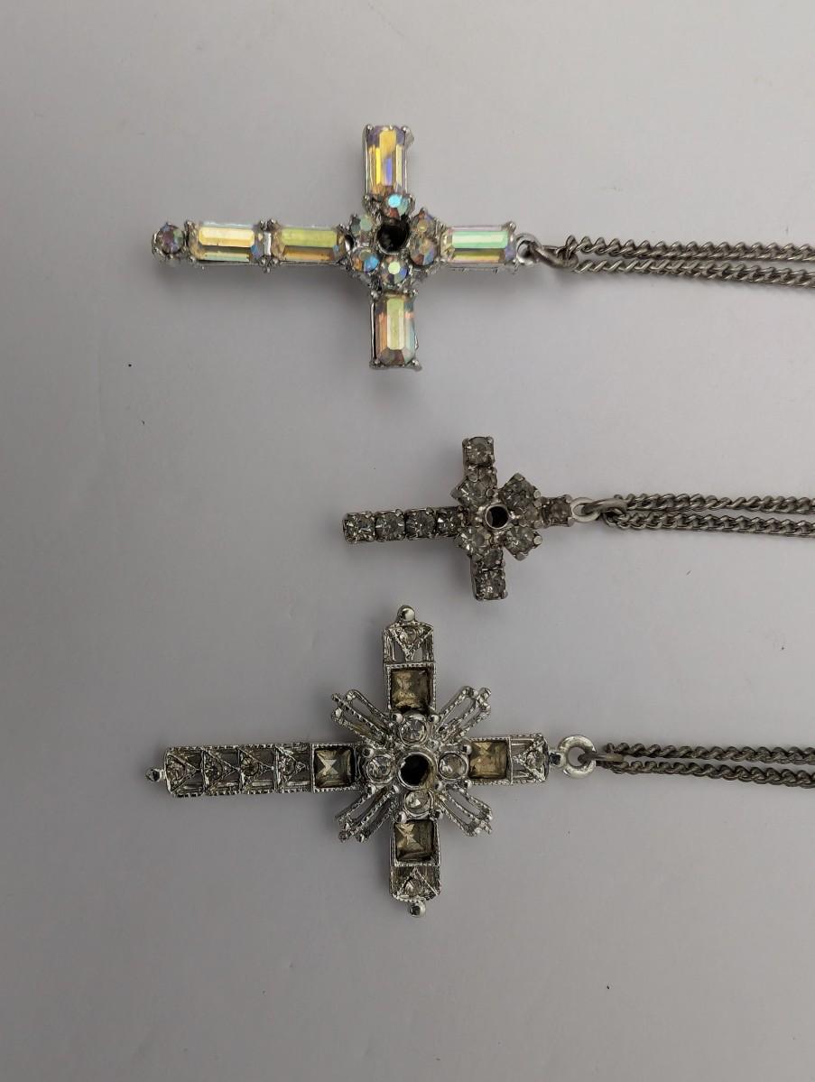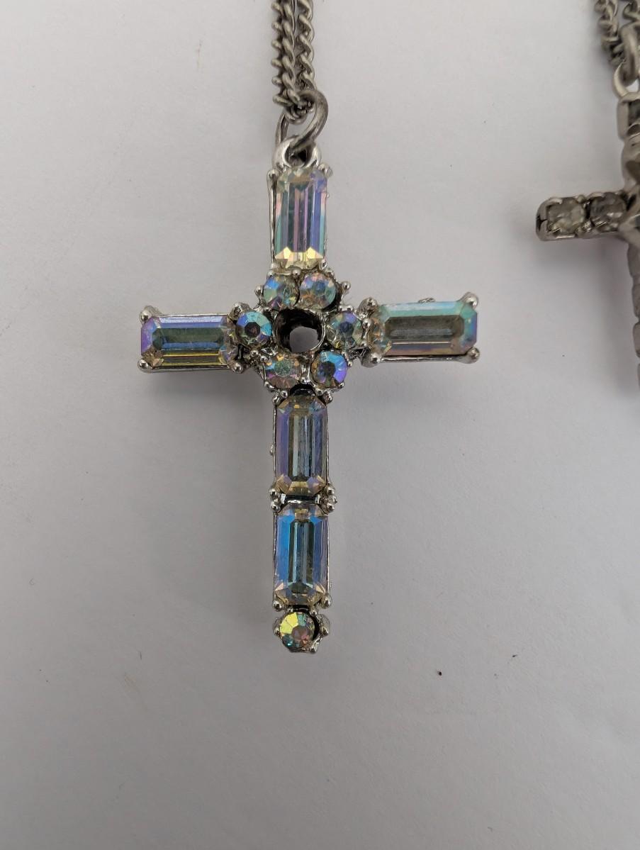vintage jewelry, rhinestone cross, cross necklace lot, aurora borealis, silver tone, religious pendant, Christian jewelry, vintage necklace, rhinestone pendant, costume jewelry, collectible crosses