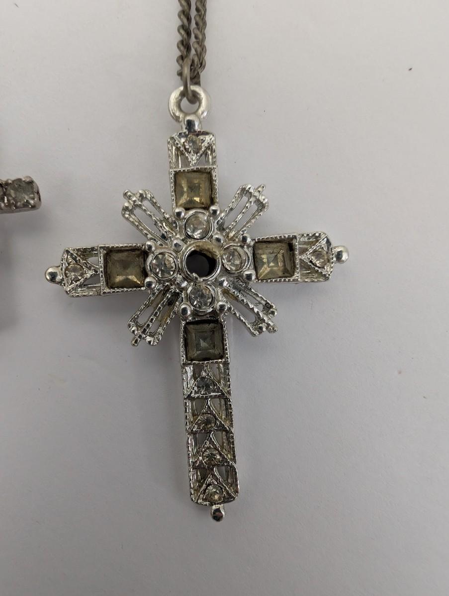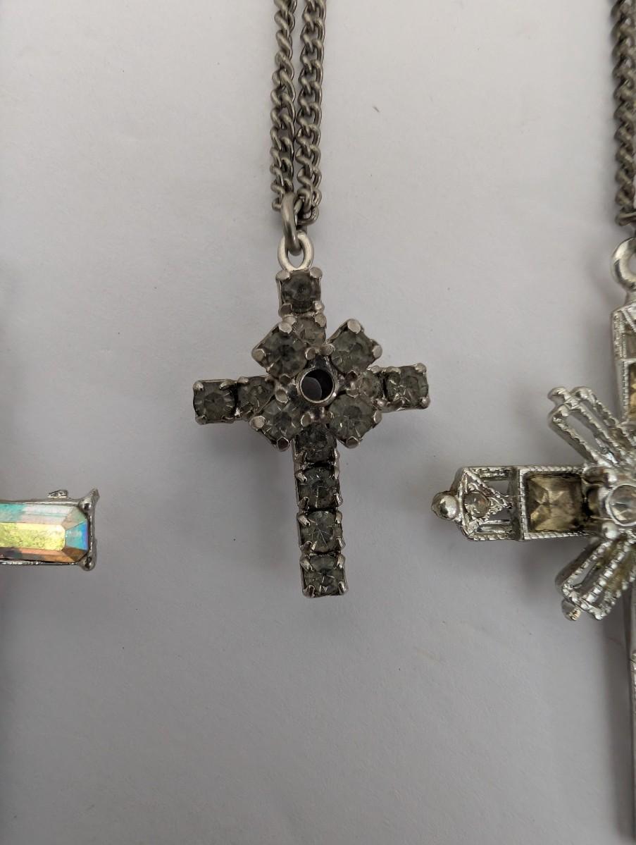 vintage jewelry, rhinestone cross, cross necklace lot, aurora borealis, silver tone, religious pendant, Christian jewelry, vintage necklace, rhinestone pendant, costume jewelry, collectible crosses