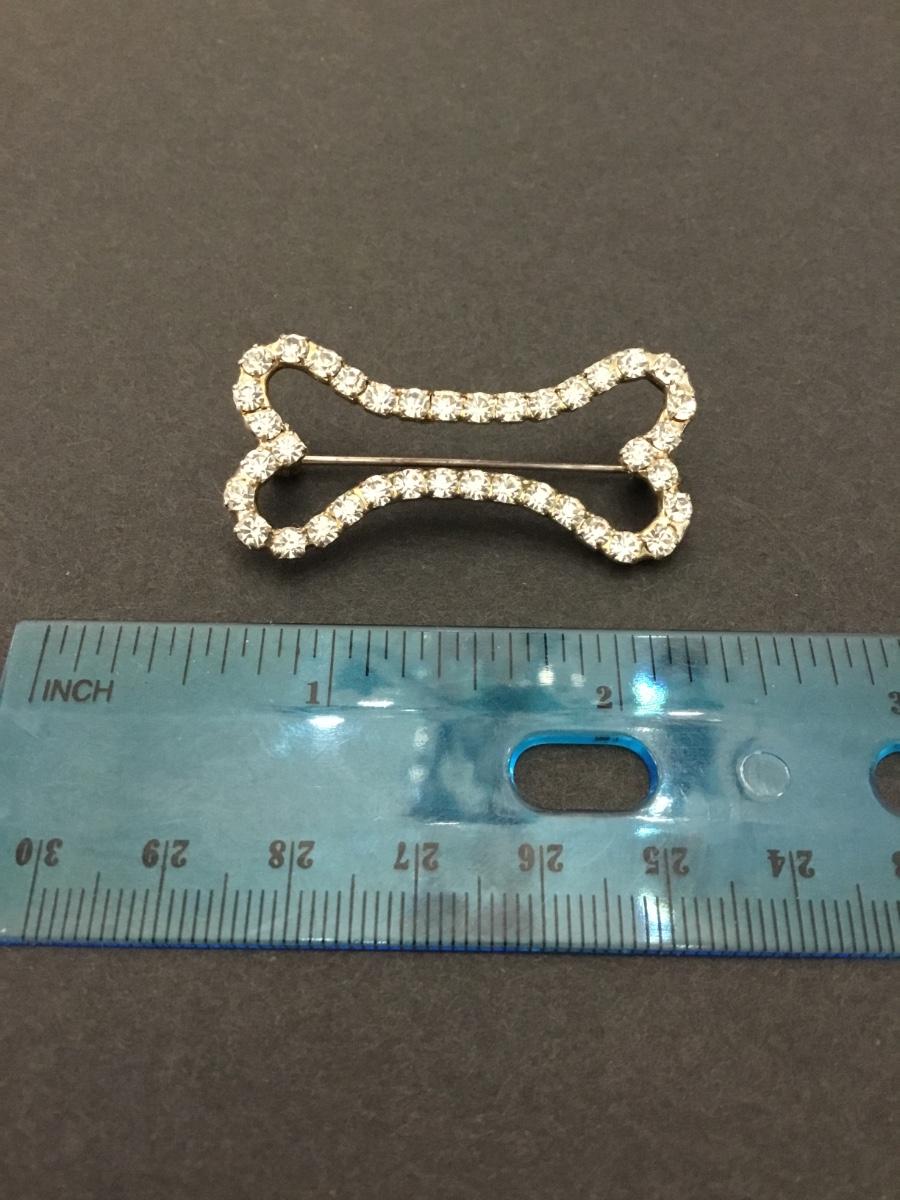Vintage, rhinestone, dog bone, brooch/pin