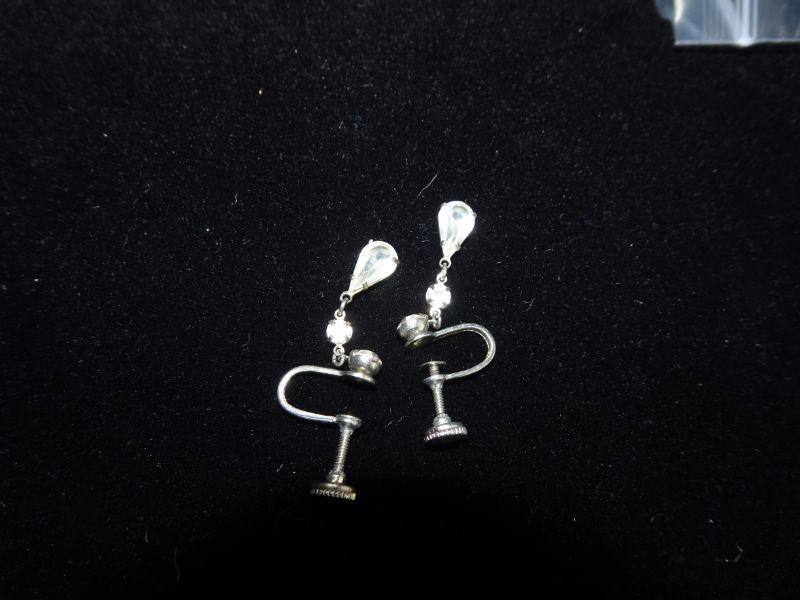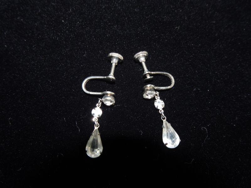 Vintage Rhinestone Drop Earrings, Screw-Back
