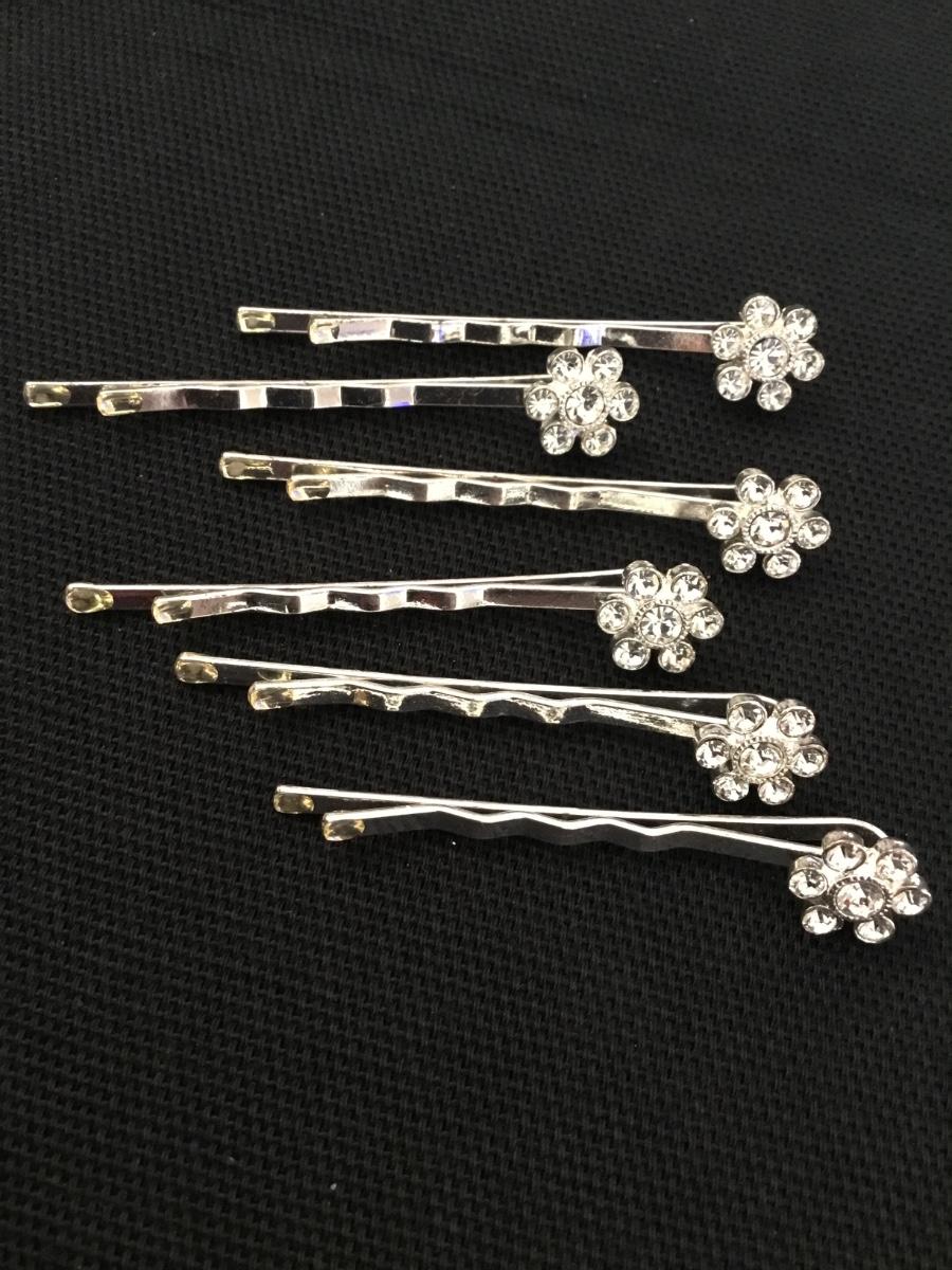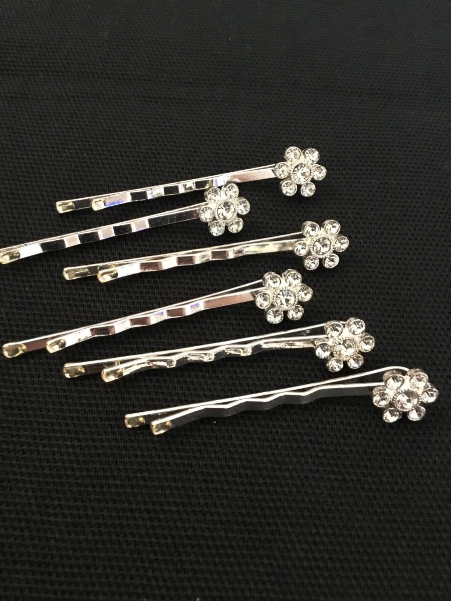 Vintage rhinestone, flower, hair pins