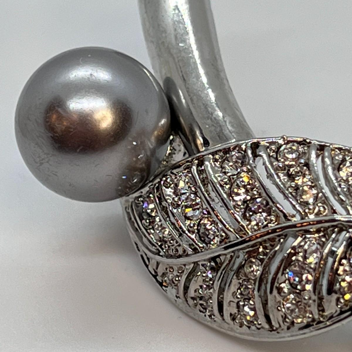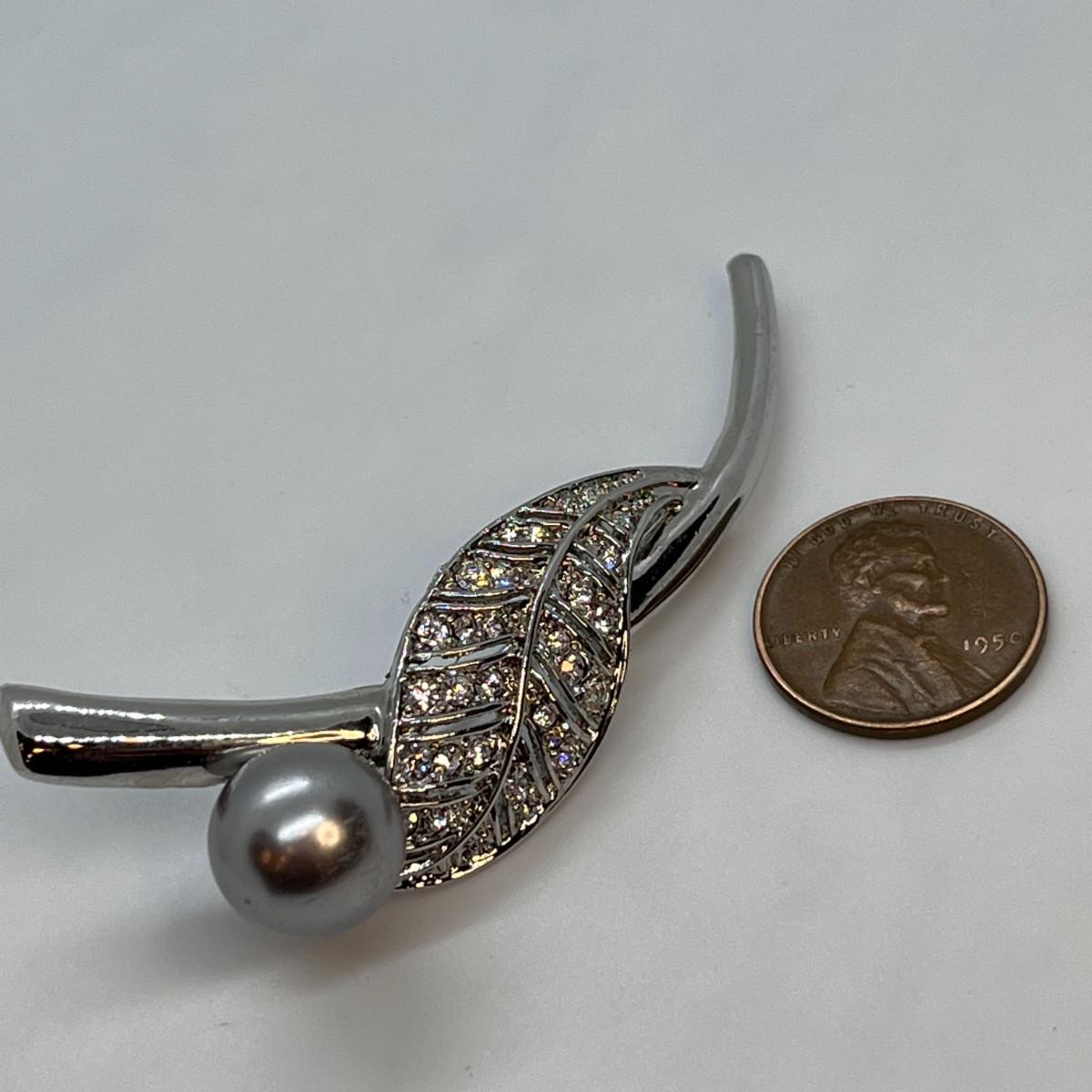 VINTAGE RHINESTONE GRAY PEARL SWOOP PIN