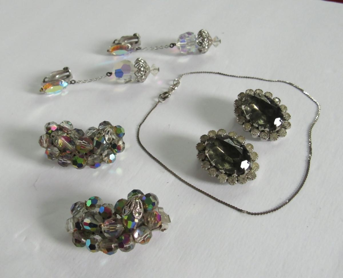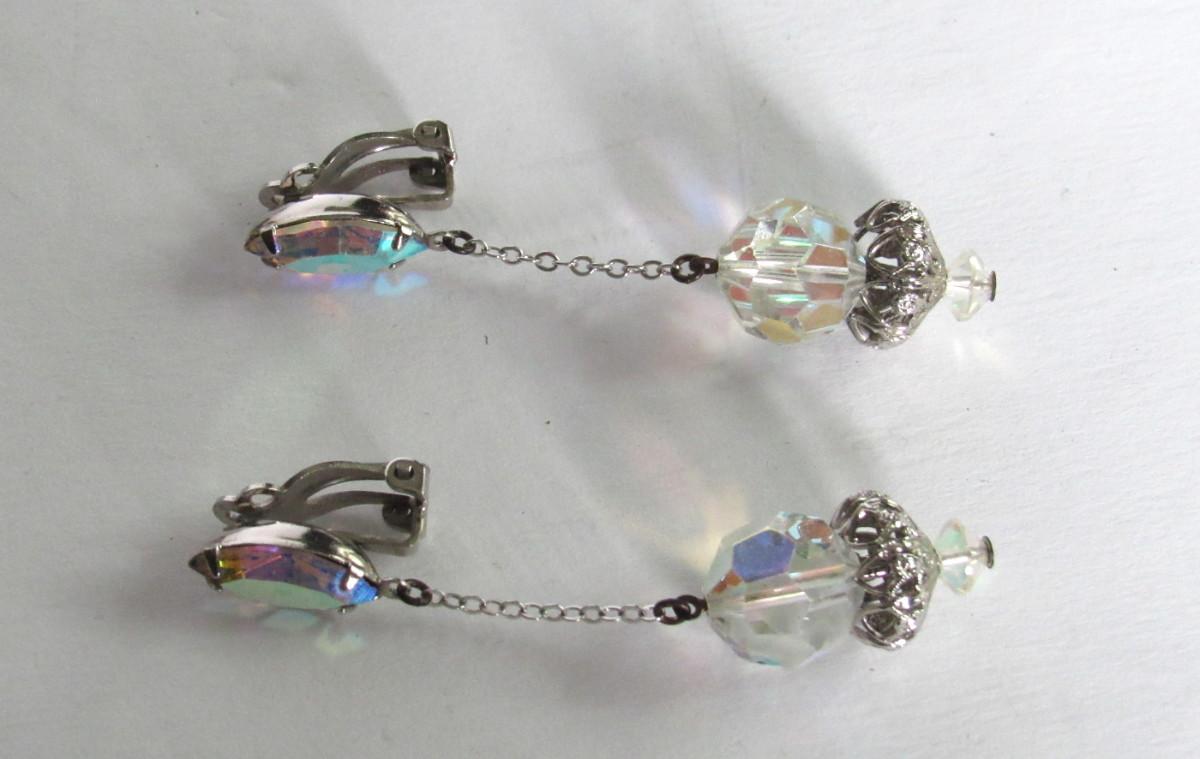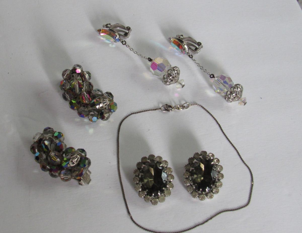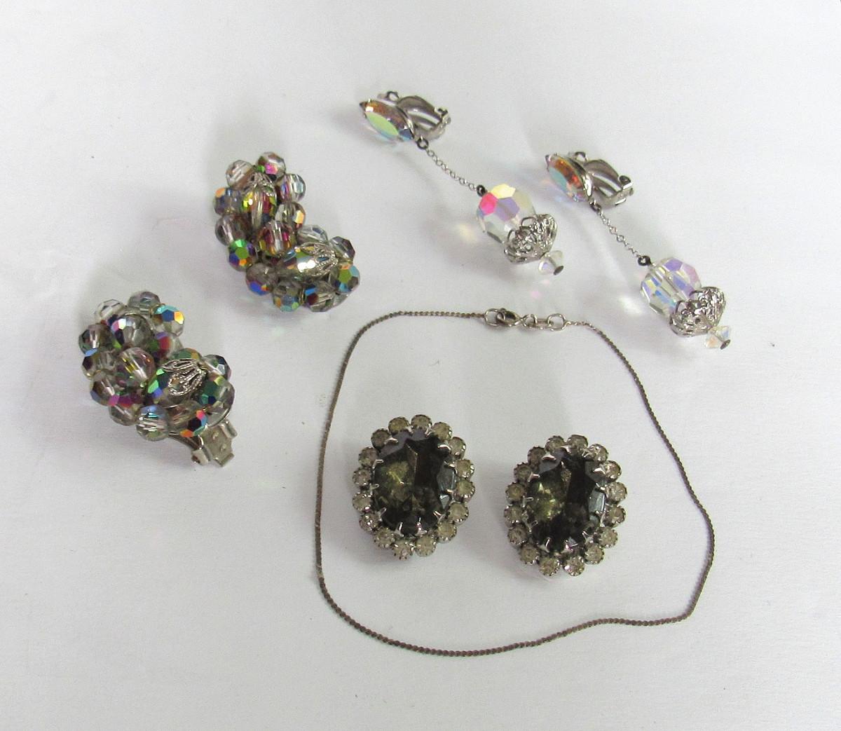 Nice Lewis Segal California AB drop earrings in very nice shape! 925 Sterling ankle bracelet. 2 nice pair unmarked rhinestone earrings. Shipping is available at actual shipping cost plus $5.00 handling fee per box for supplies/labor. See our terms for details. All sales are final. Condition notes may not be all inclusive, we may miss some issues as most vintage items are not in mint condition and have some degree of wear, paint loss, etc, but we always try to note obvious damage.