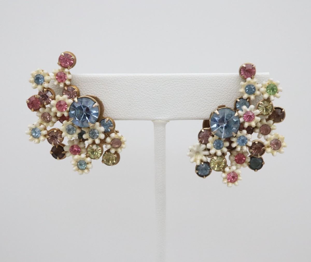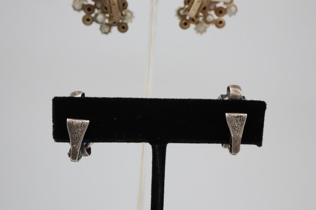 Vintage Rhinestone Jewelry Lot which includes Leru, Eisenburg Ice. Blue Stone Clip Earrings are Sterling Silver.