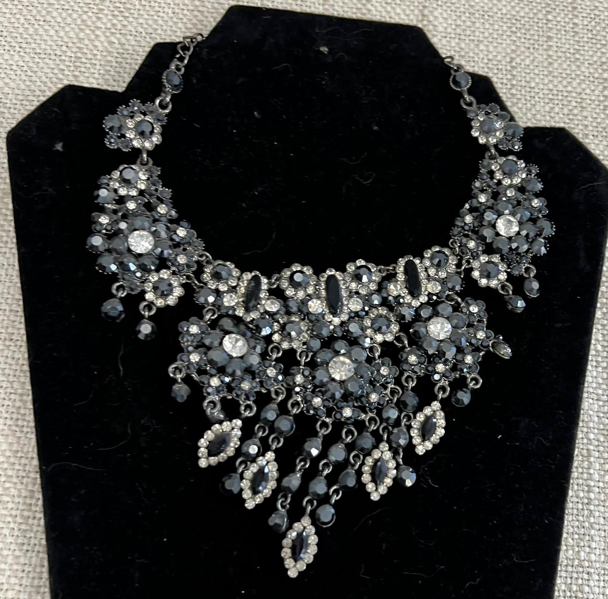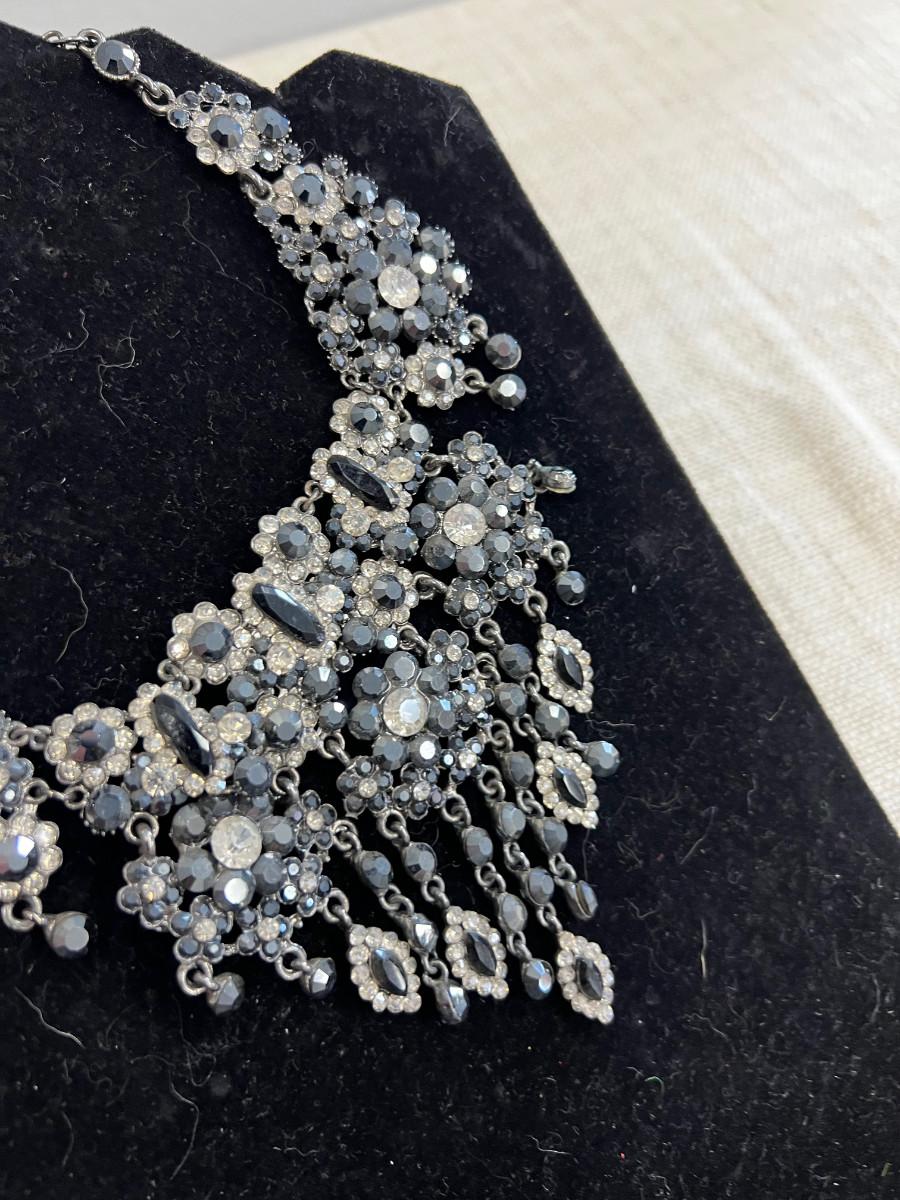 Vintage Rhinestone Marcasite Grey Necklace