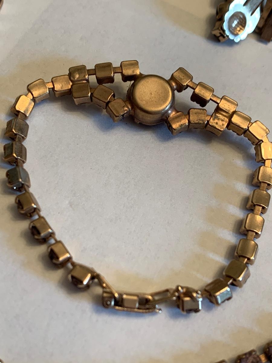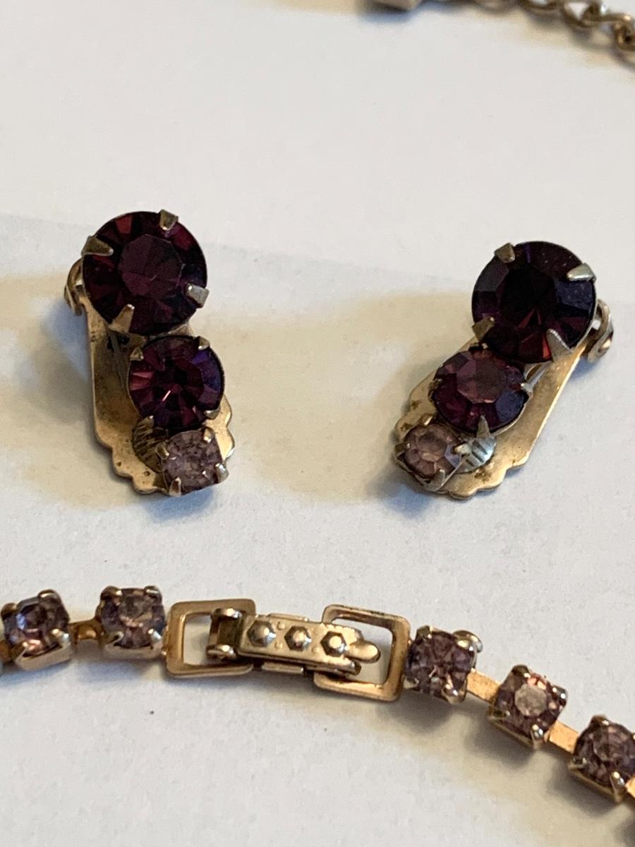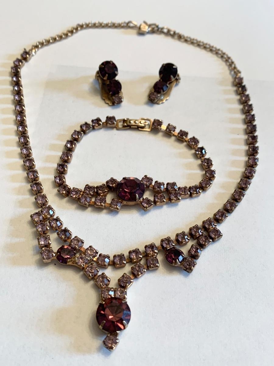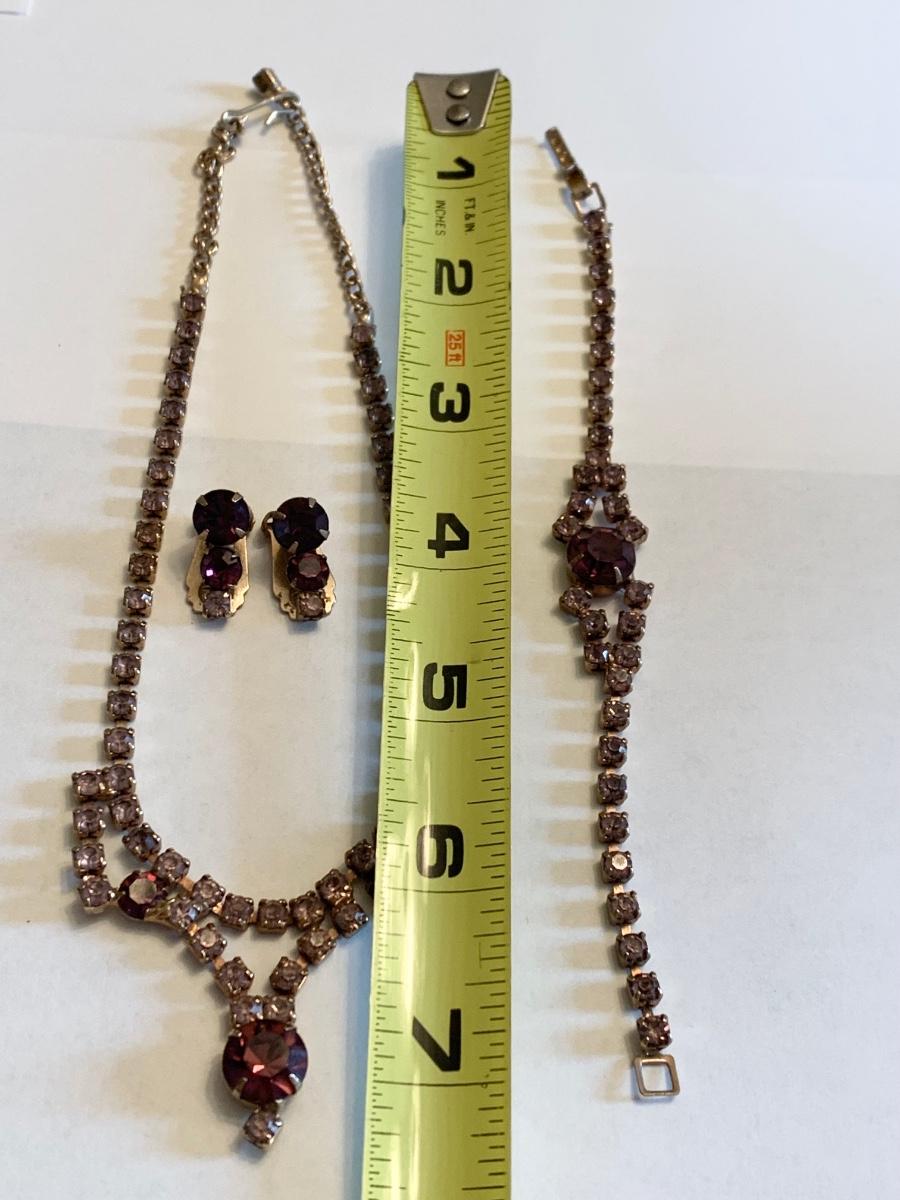 Vintage Rhinestone Matching Necklace Bracelet & Earrings