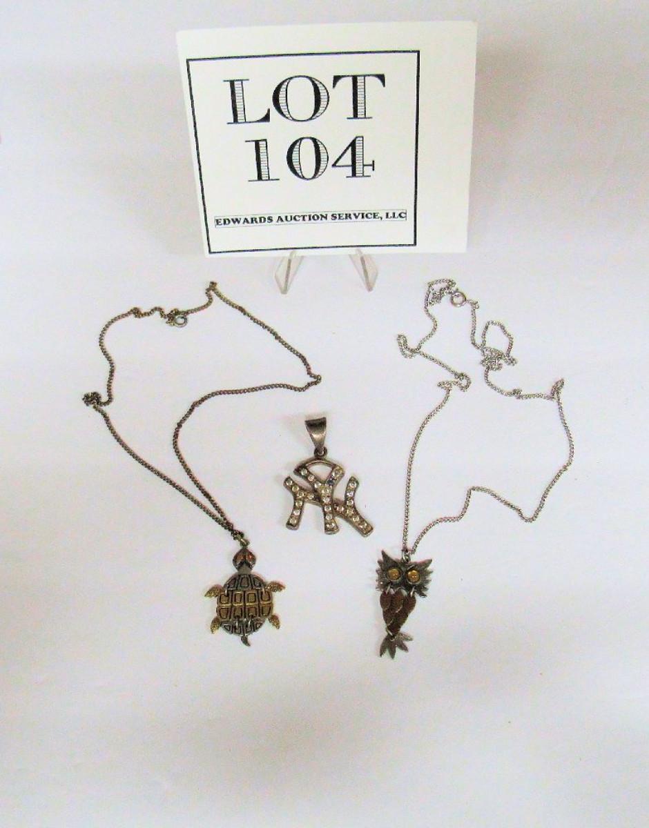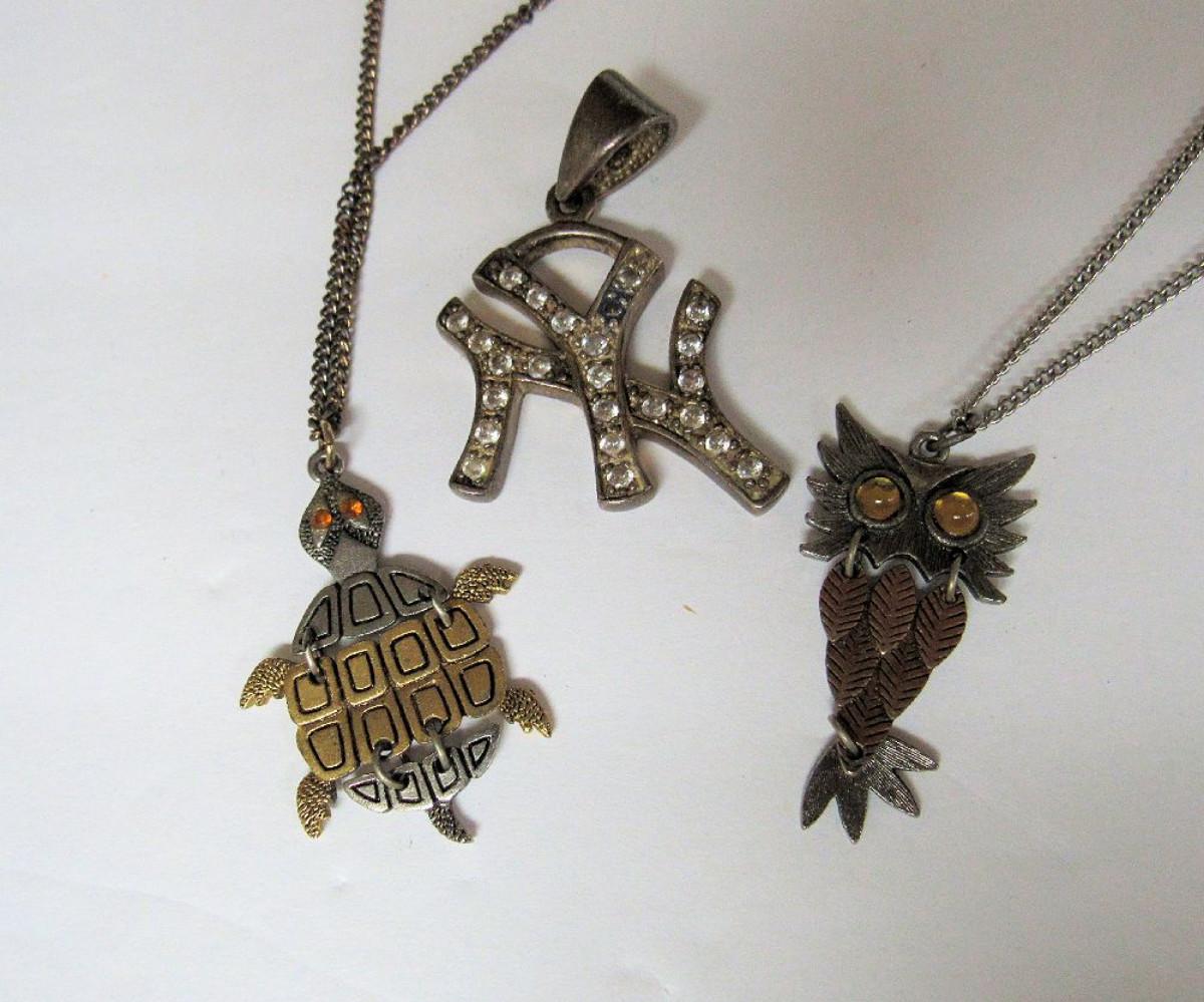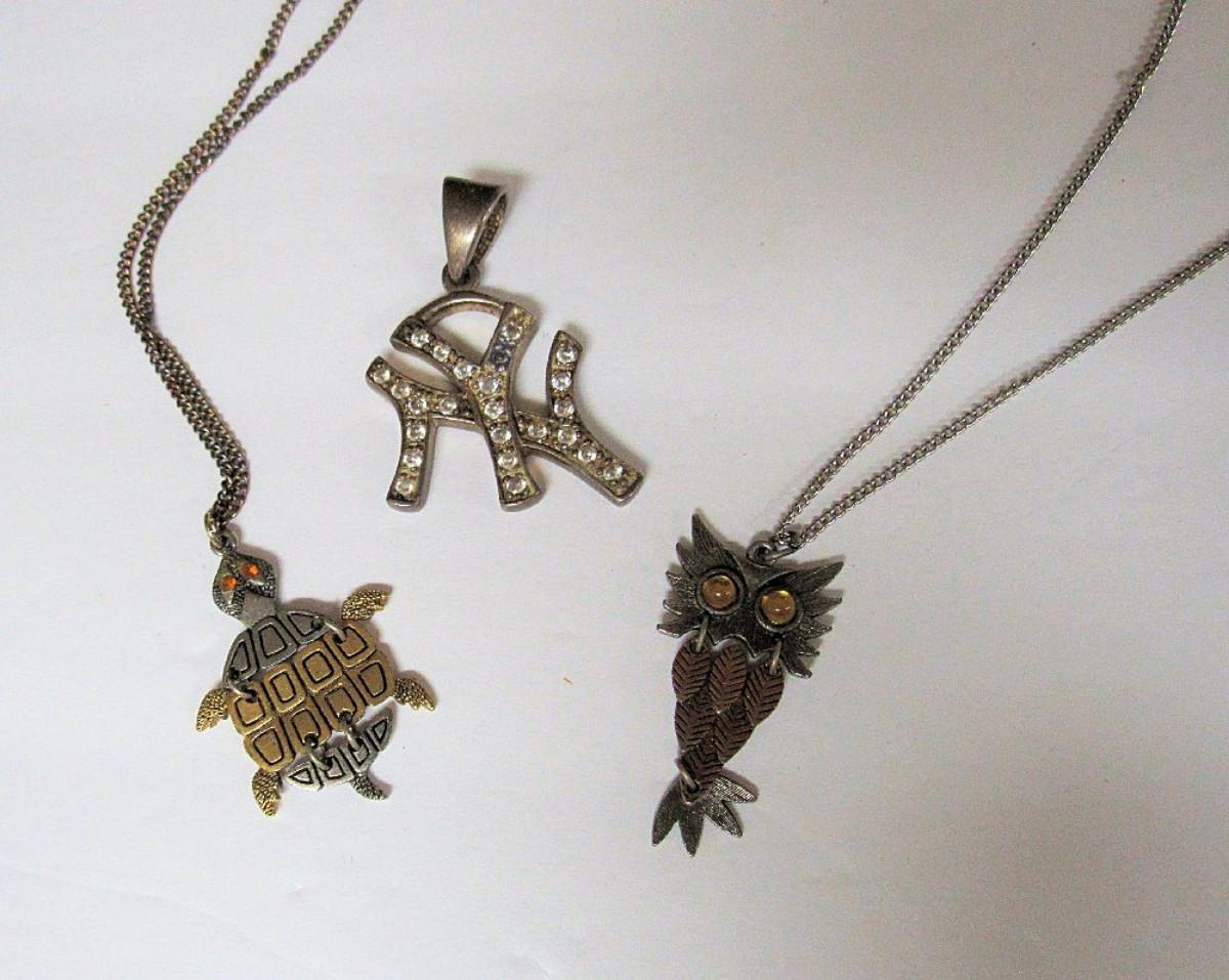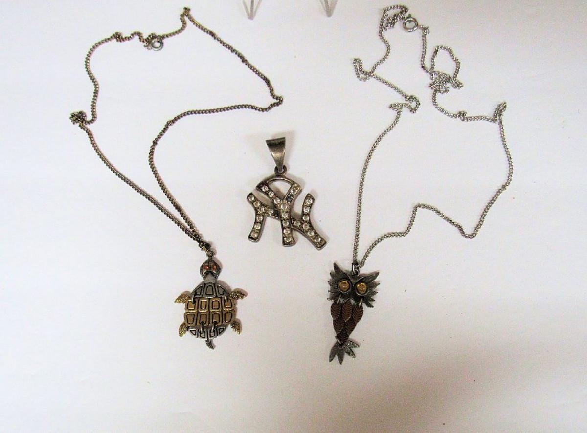 Vintage Rhinestone NY Pendant, Turtle and Owl Necklaces
