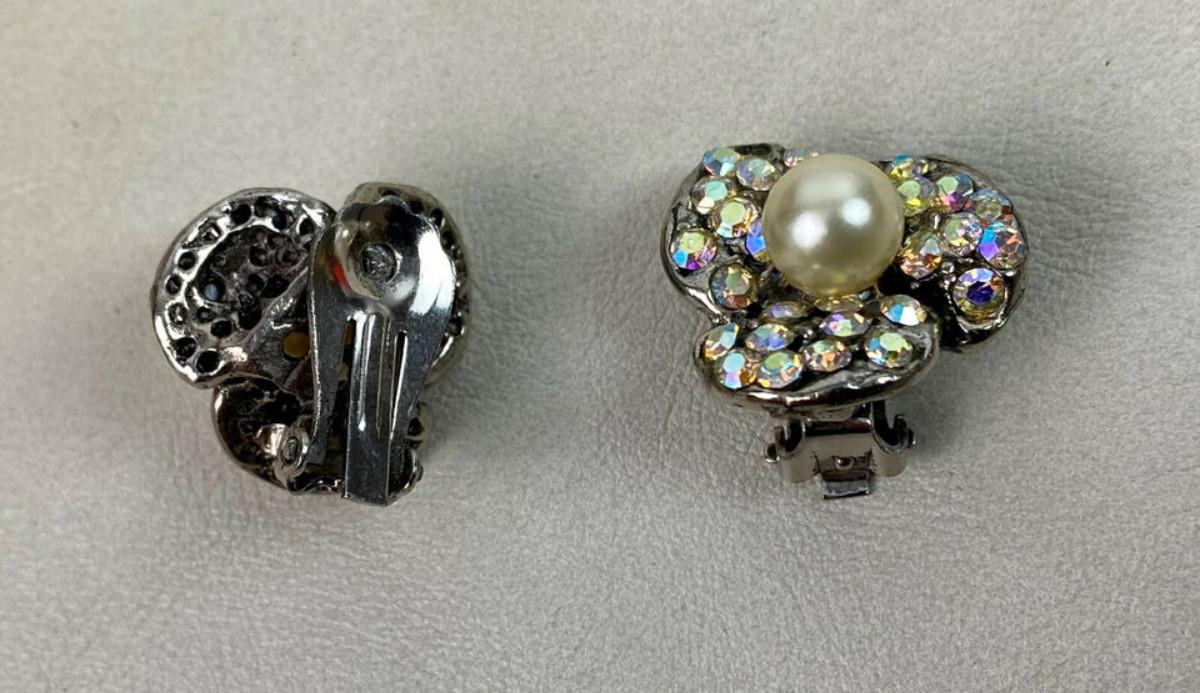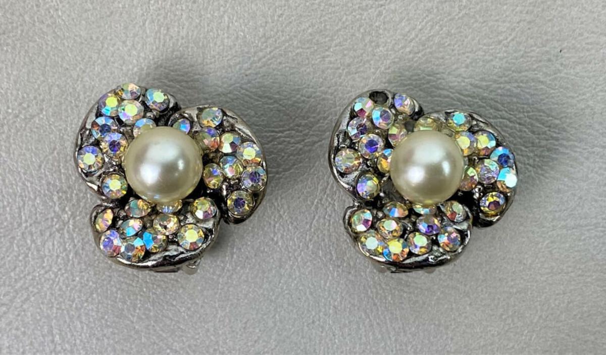 vintage RHINESTONE & PEARL CLIPON EARRINGS