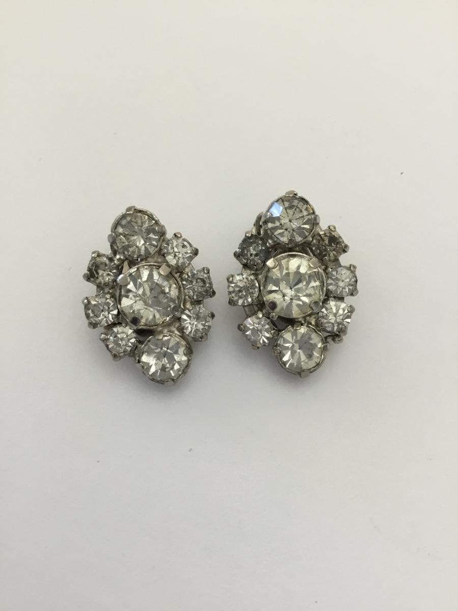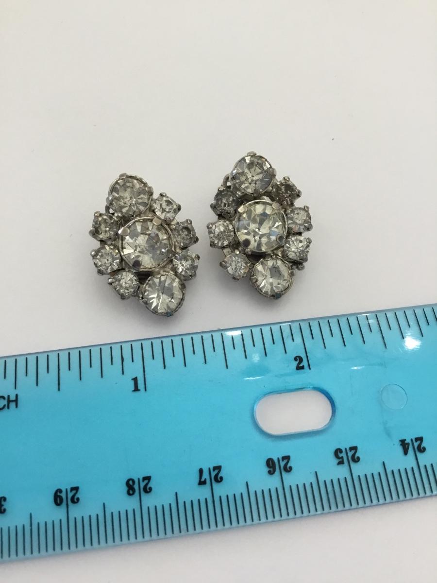 Vintage rhinestone silver tone clip on earrings Art Deco style