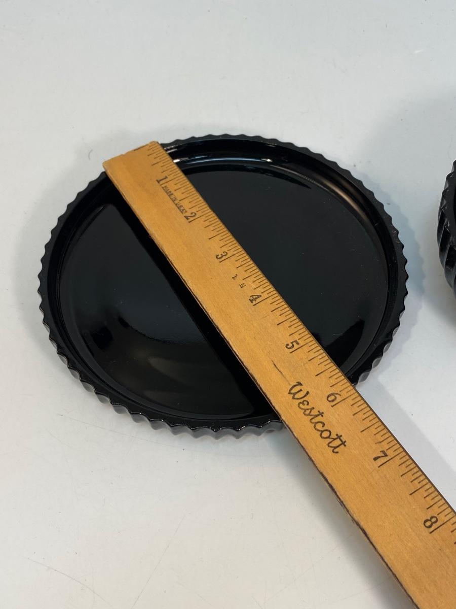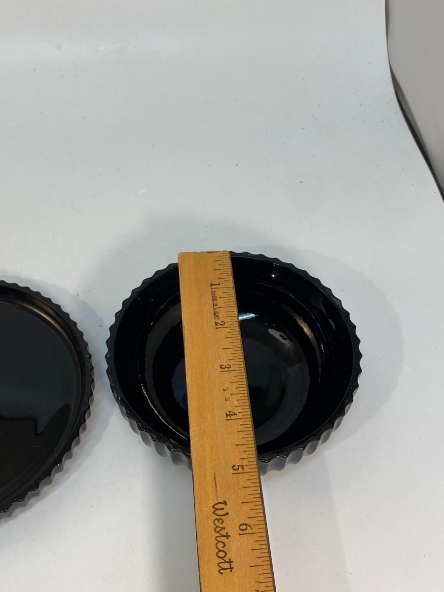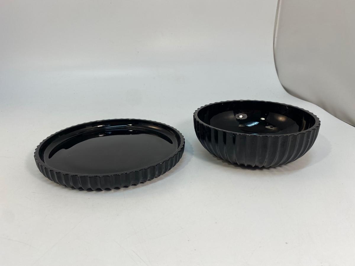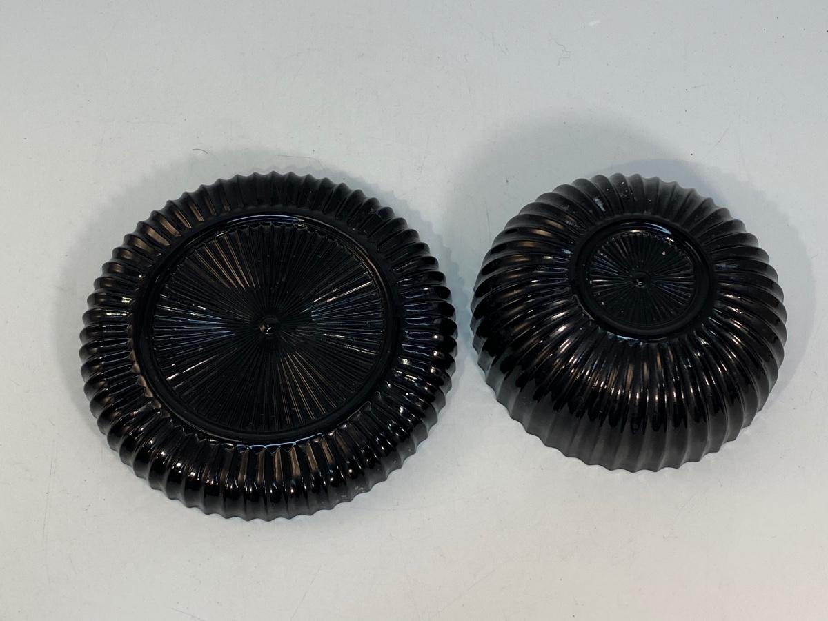 Vintage Ribbed Black Bowl & Small Plate. Solid black glass. Great ribbed detail. May be Indiana Glass. In good condition.