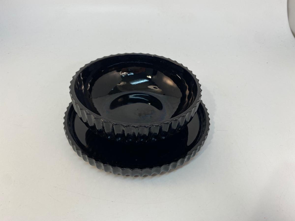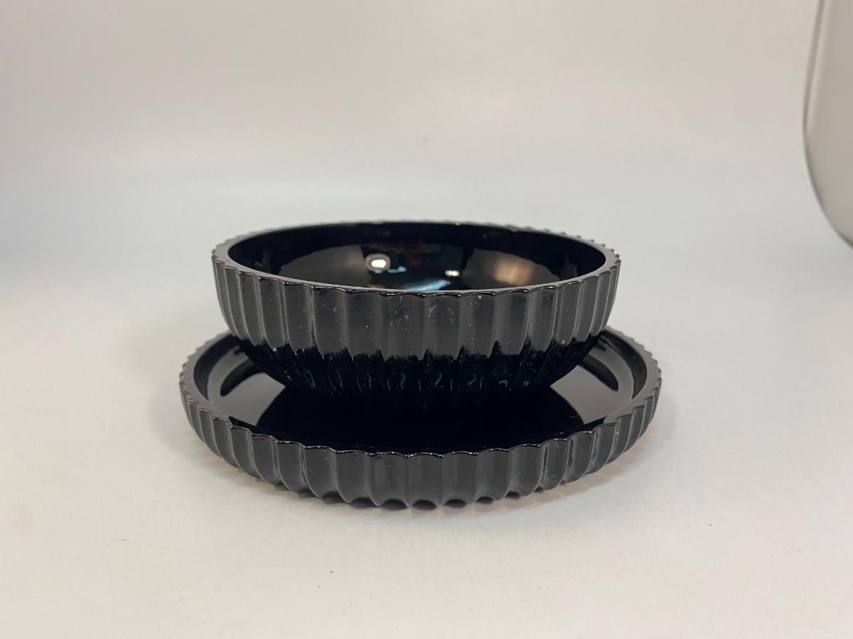 Vintage Ribbed Black Bowl & Small Plate Indiana Glass
