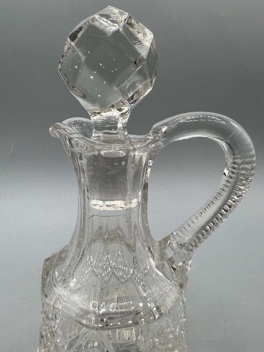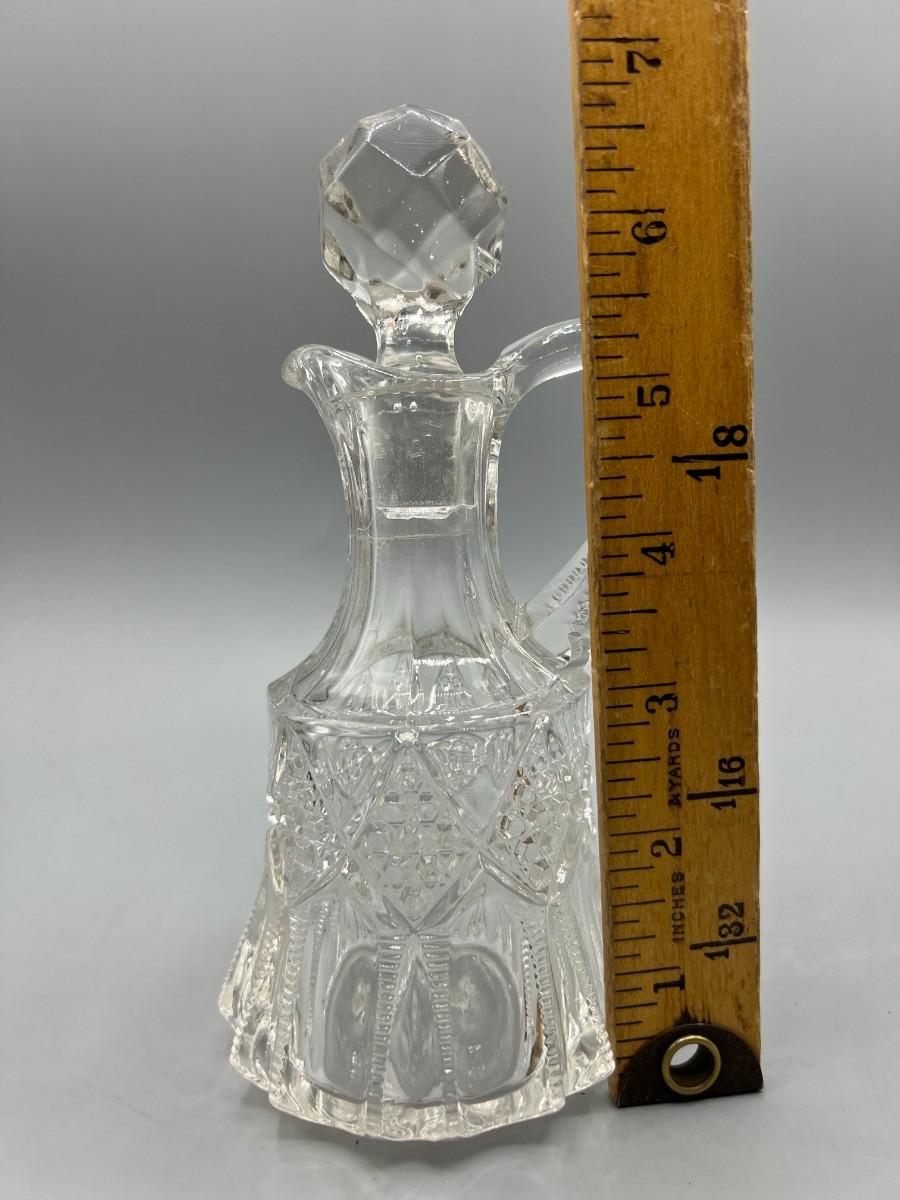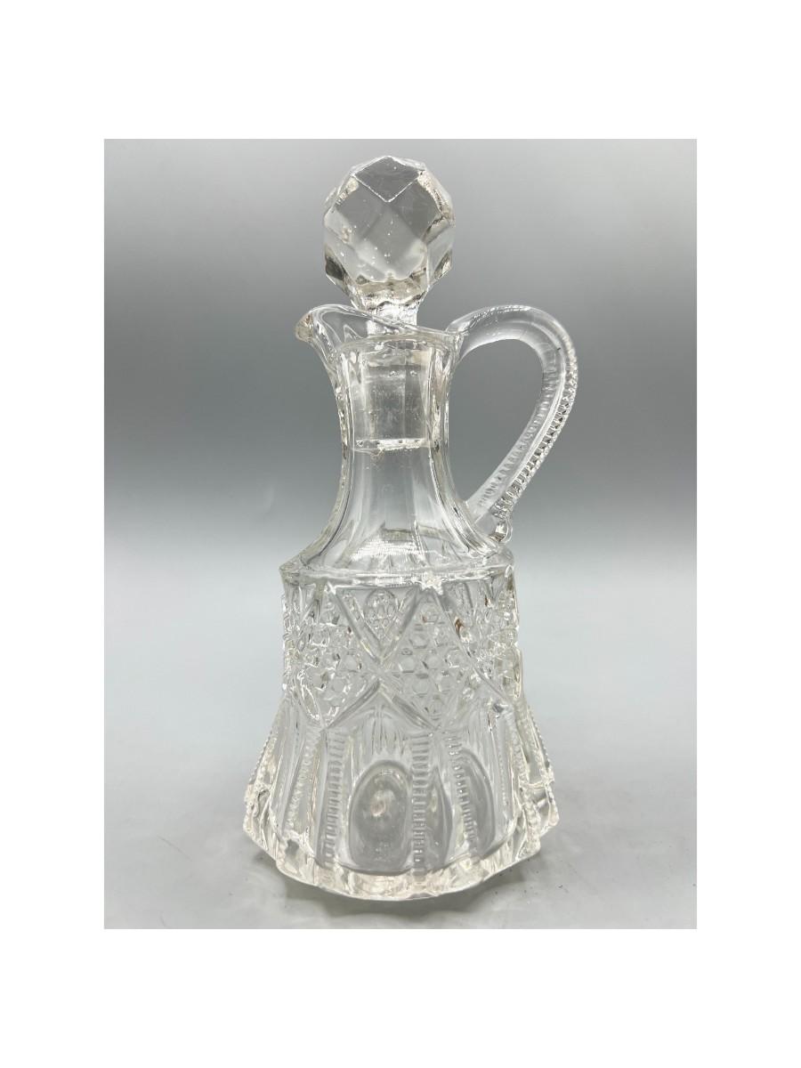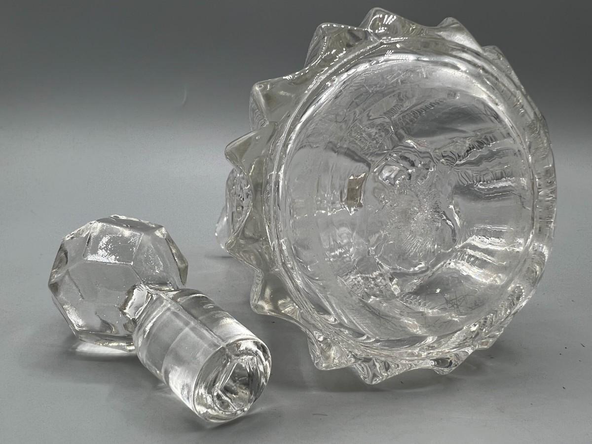 Vintage Ribbed Etched Pattern Crystal Glass Bottle Cruet Decanter