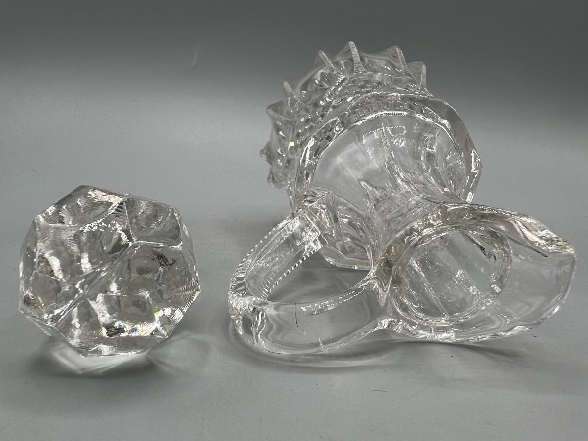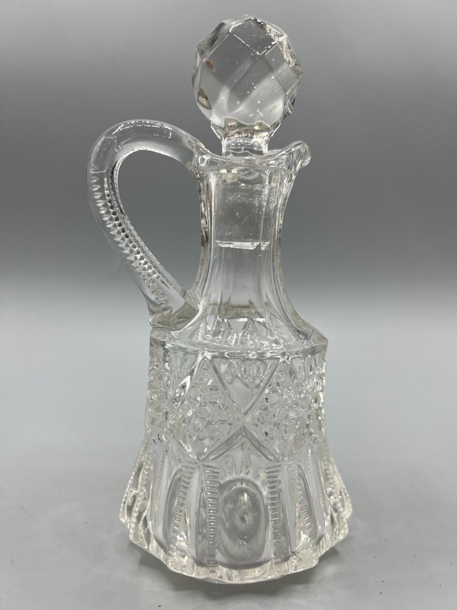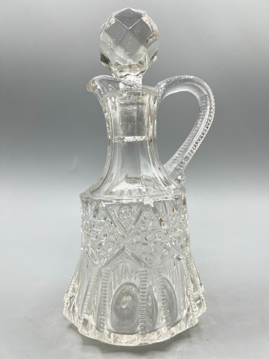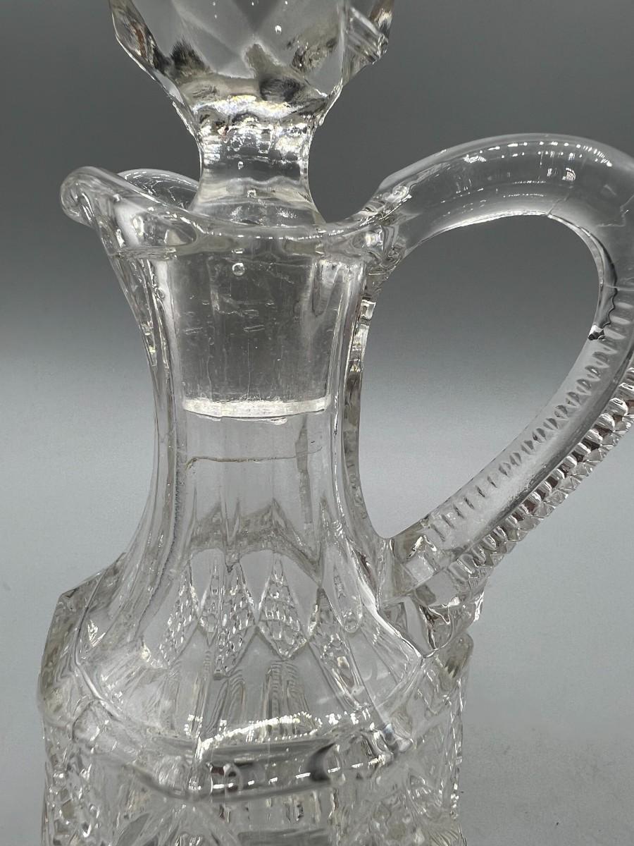 Vintage Ribbed Etched Pattern Crystal Glass Bottle Cruet Decanter