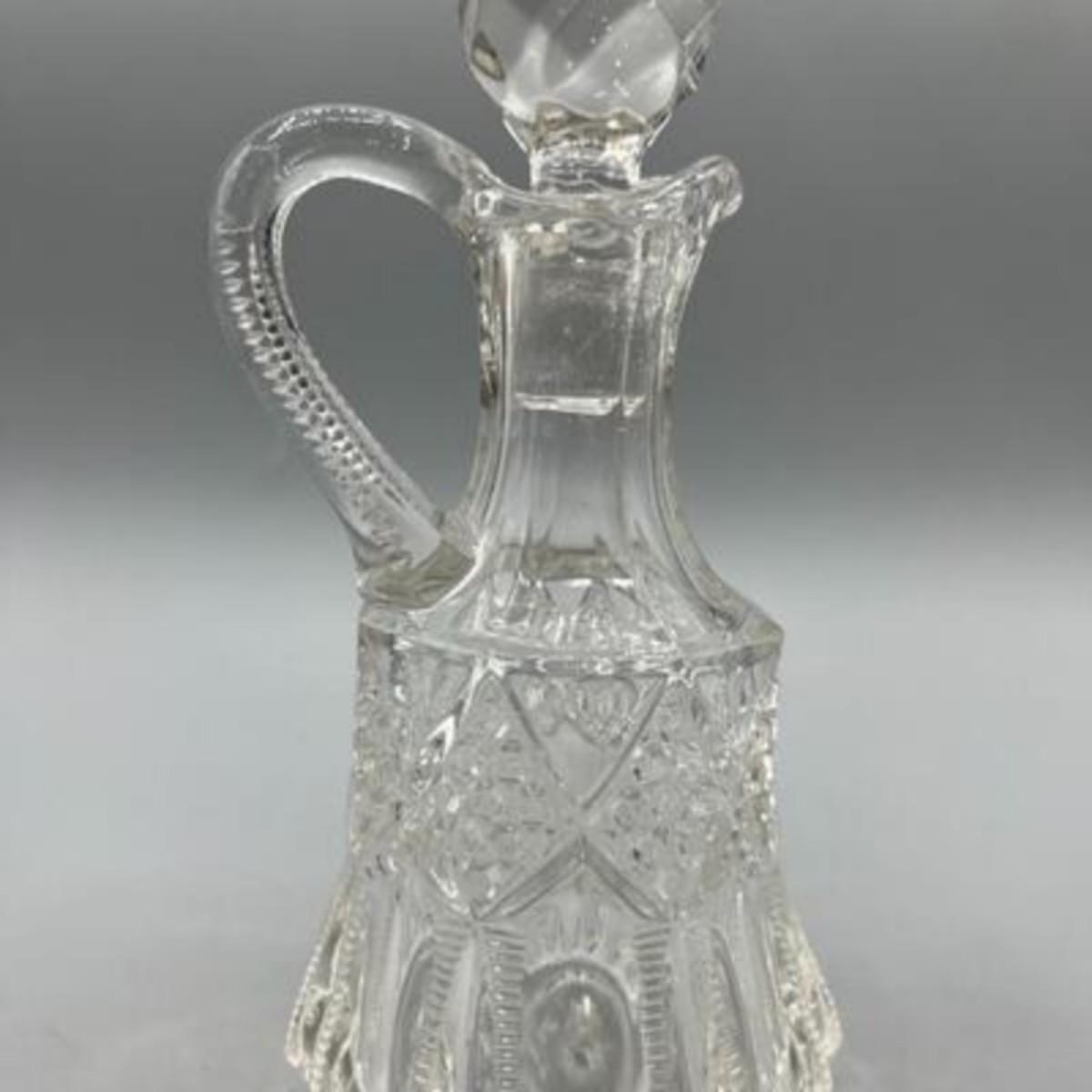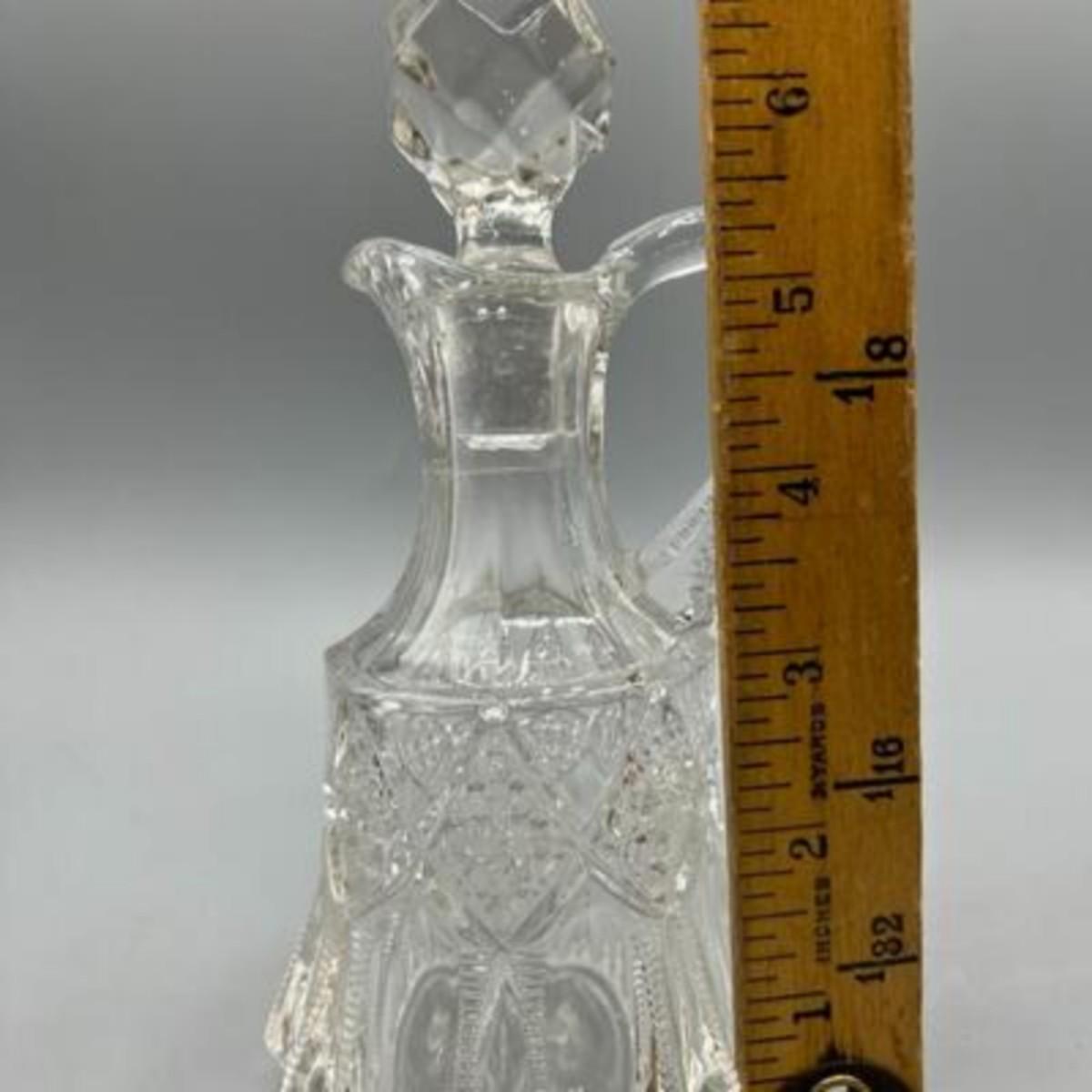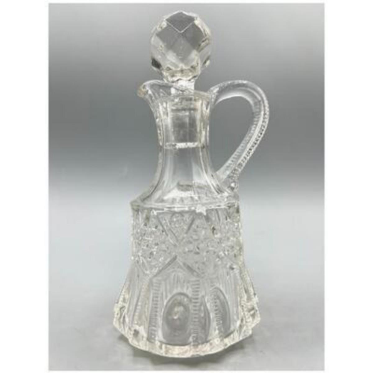 Vintage Ribbed Etched Pattern Crystal Glass Bottle Cruet Decanter
