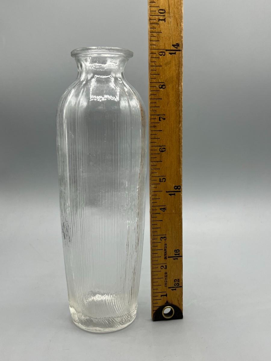 Vintage Ribbed Glass FTDA Decorative Minimalist Bud Flower Vase, there is no signifncant damage to the glass and is in good vintage condition. Check pictures for more details and for sizing.