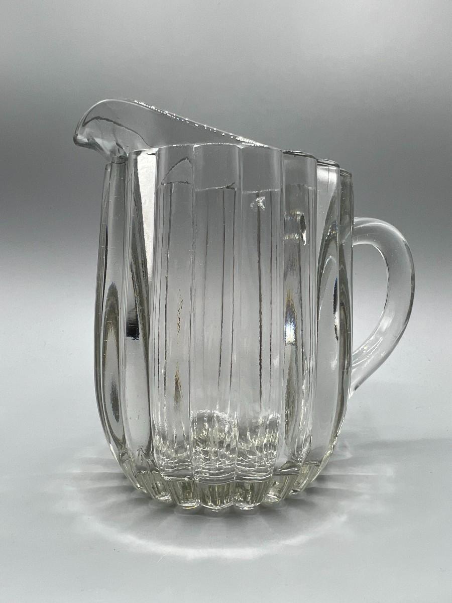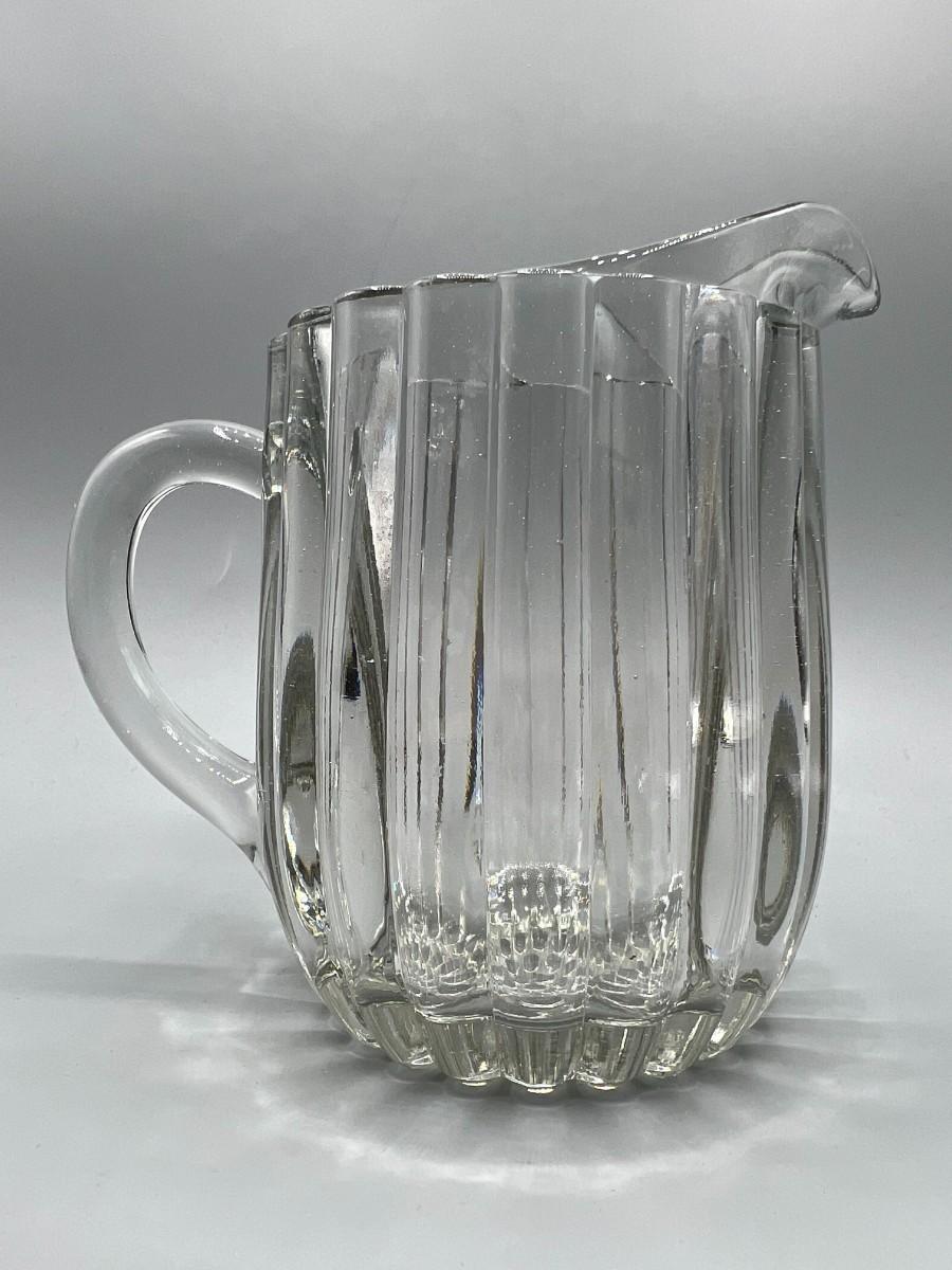 Vintage Ribbed Glass Hobnail Bottom Jeannette Glass Pitcher