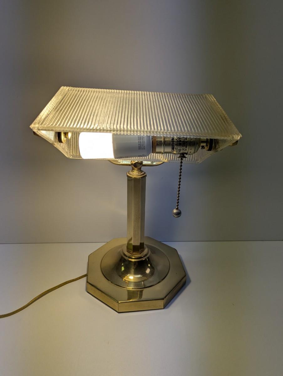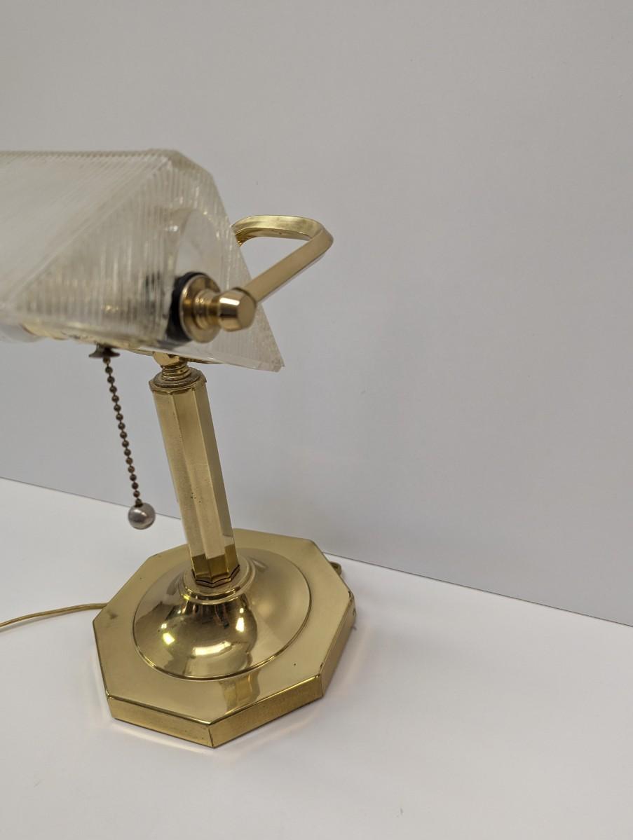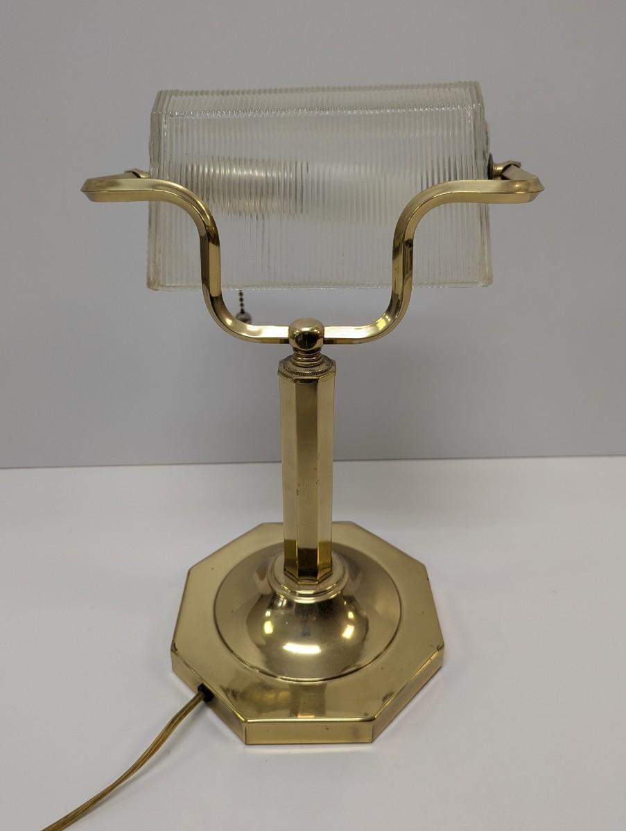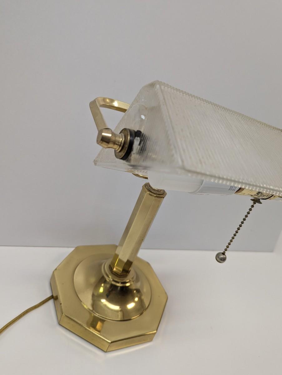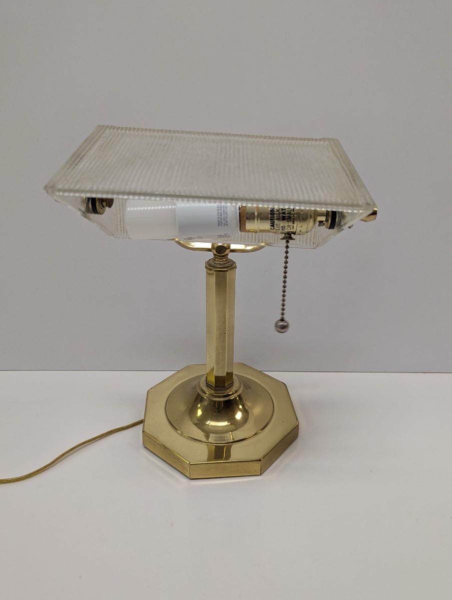 Vintage Ribbed Glass Shade Bankers Desk Lamp