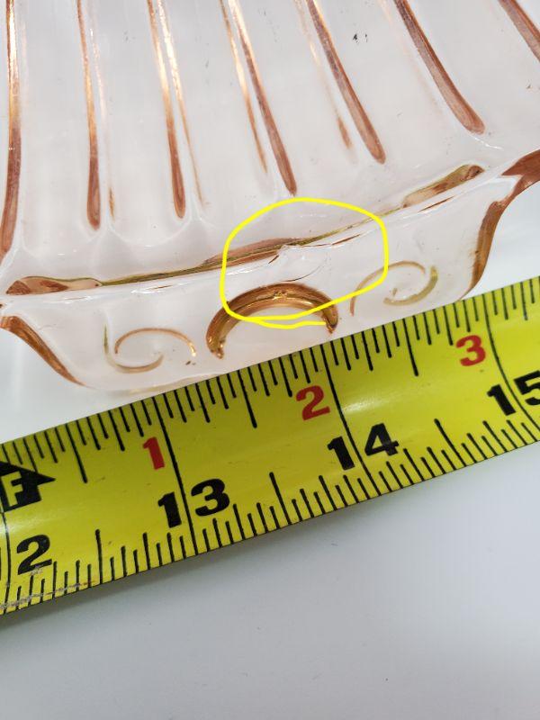 This bowl is a gorgeous color, does have a chip on one handle (**see photos) and has been used....lots of life left!