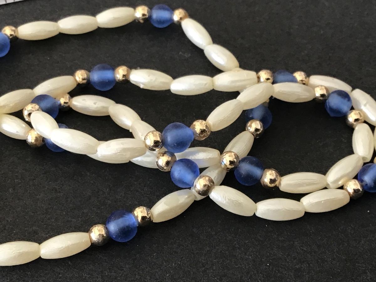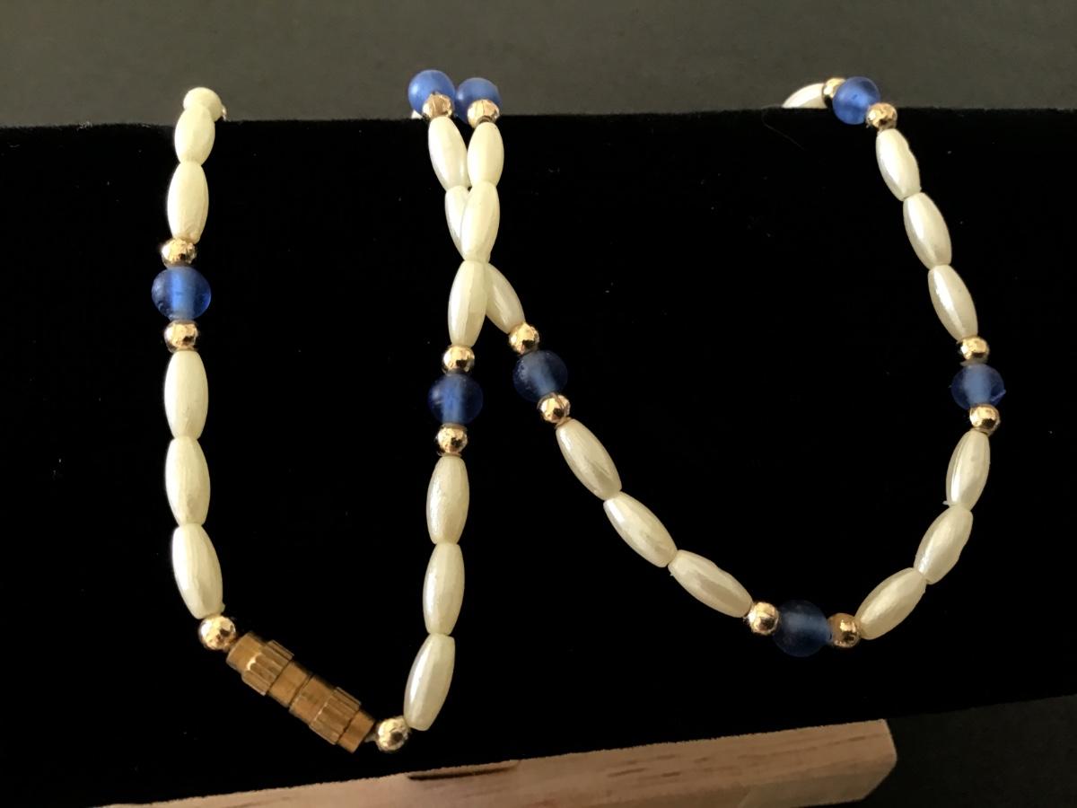 Vintage Rice Pearl Blue Glass Stone Necklace Barrel Clasp