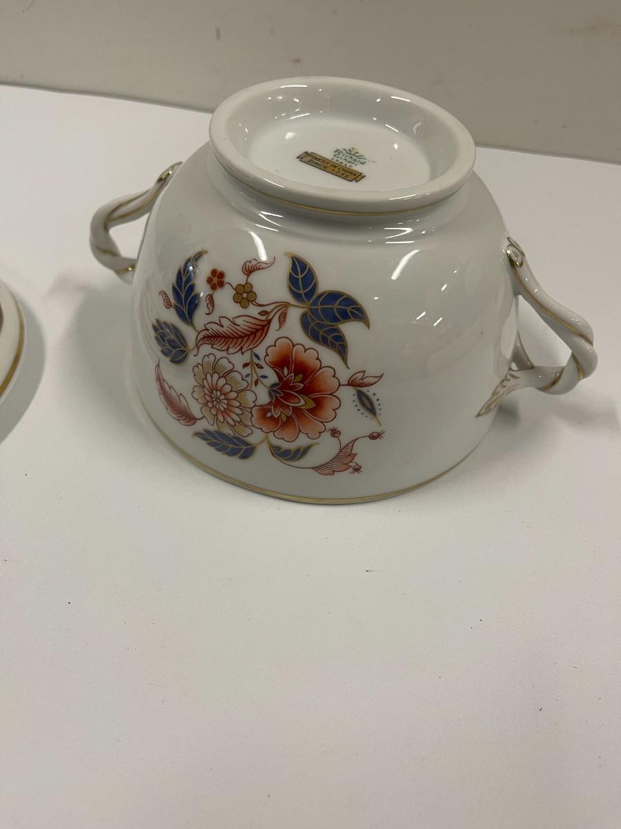 Vintage Richard Ginori Sienna Rust lidded bowl, excellent condition. From handle to handle it's about 7". 5" high to the top of the finial on the lid.