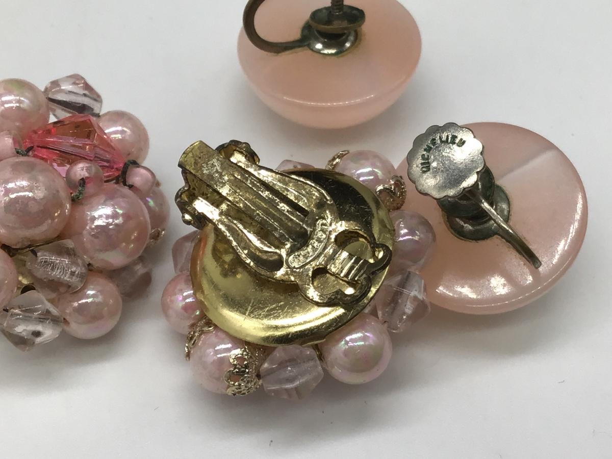 Vintage Richelieu Signed Earrings Screw back 1950 Pastel Dots Pink And Japan set