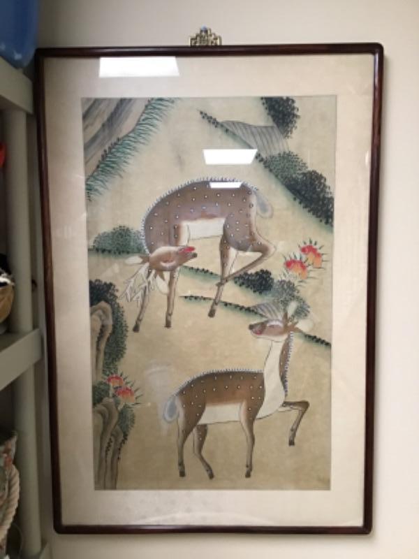 Artist unknown. Professionally framed and matted in silk. See photos. Frame measures 24x36 inches