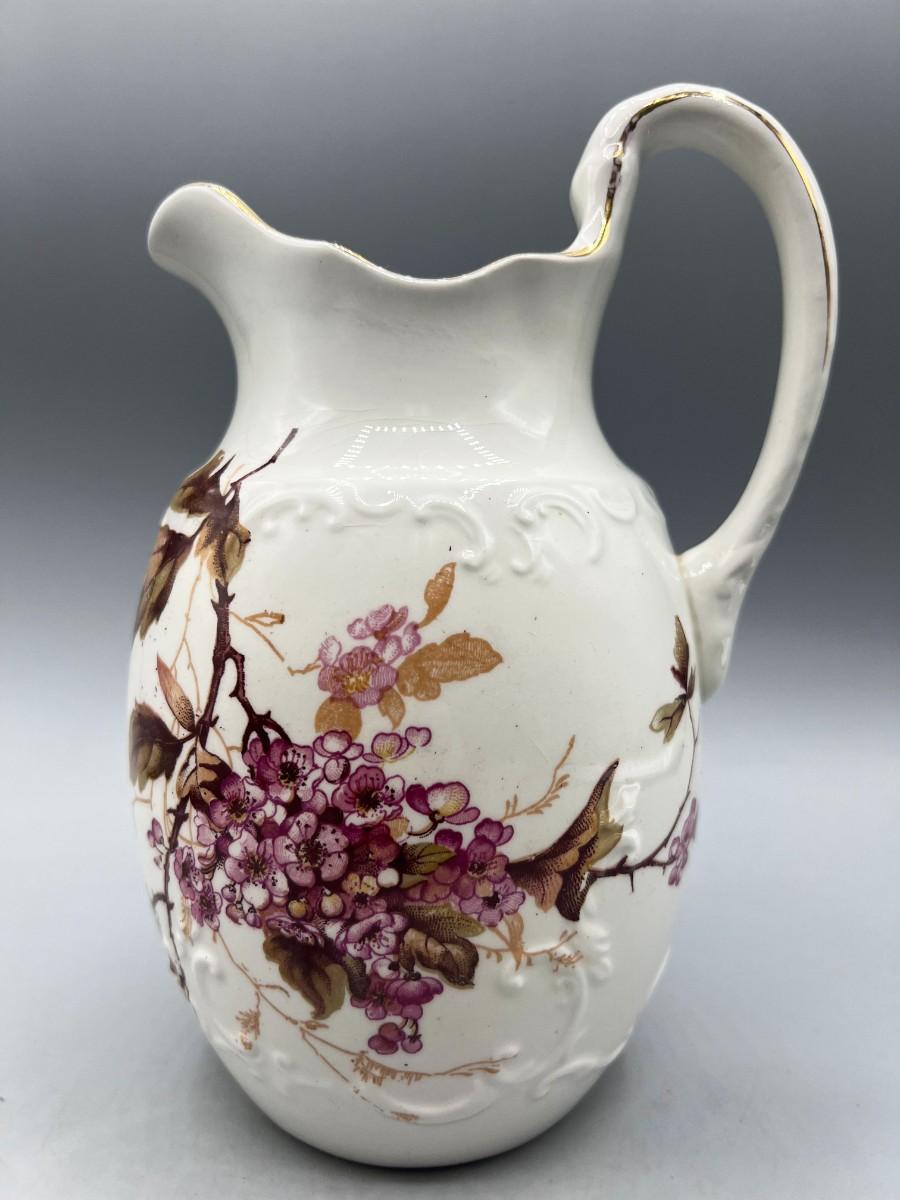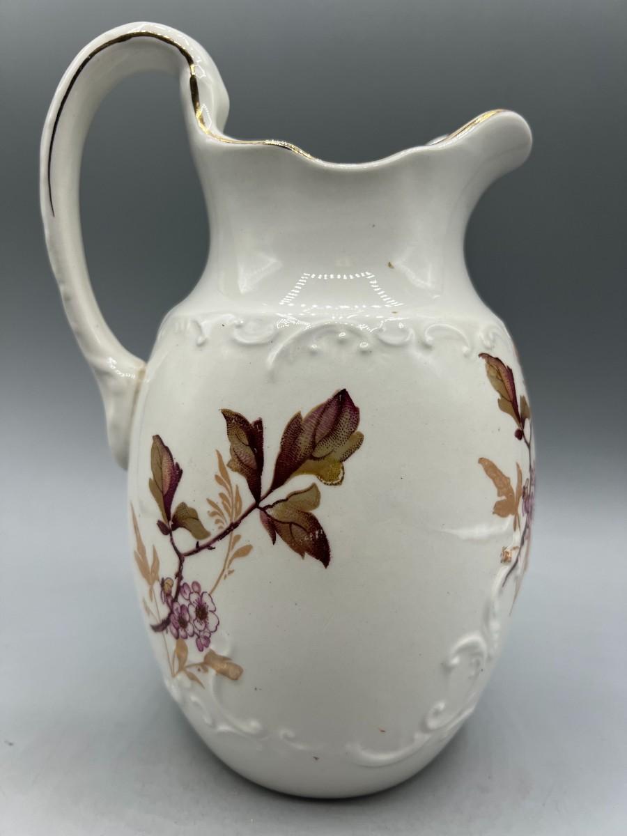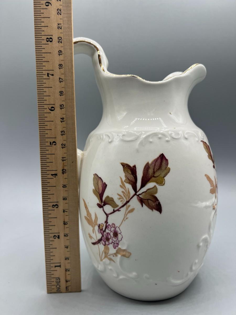 There is no significant damage to the porcelain pitcher and is in overall good decorative or collectible condition. Check pictures for more details and for sizing.