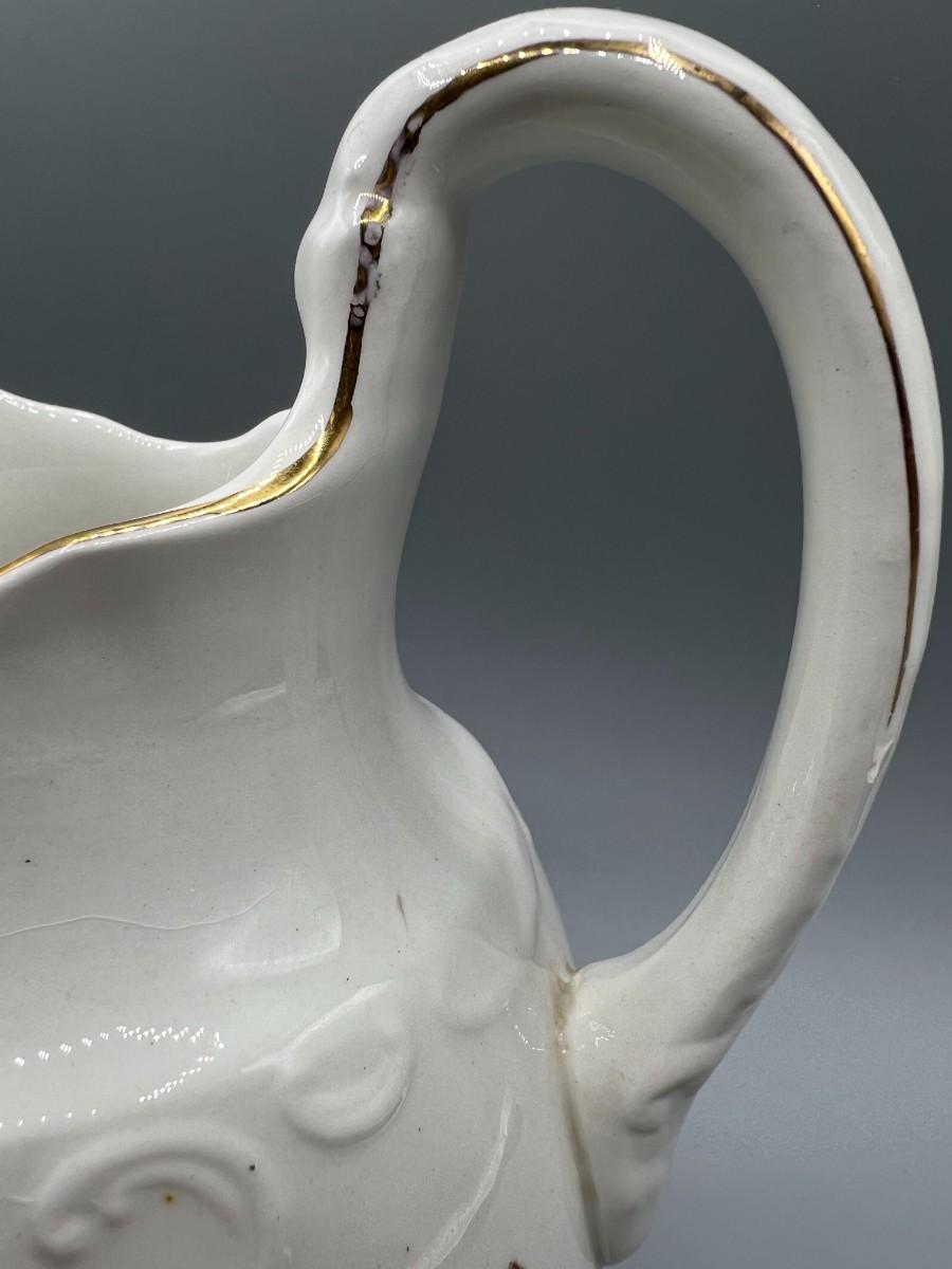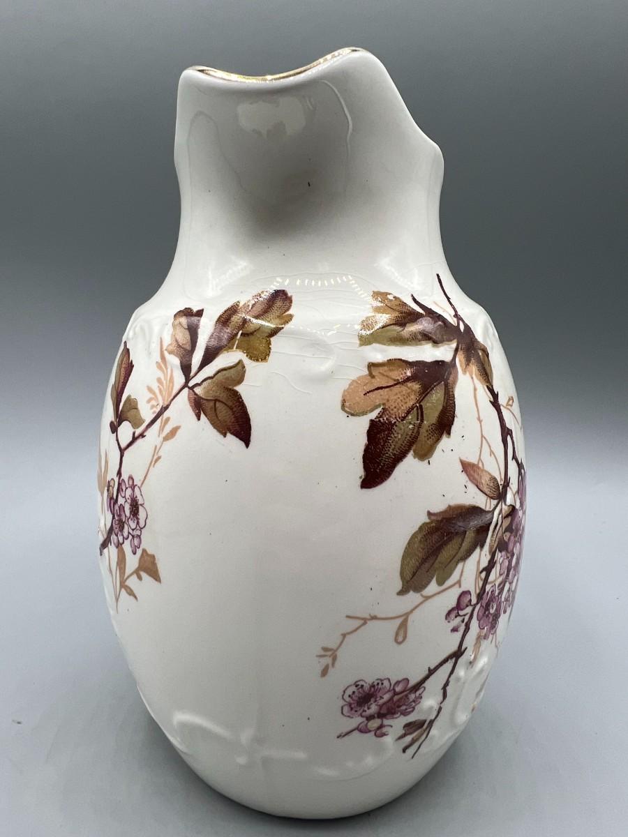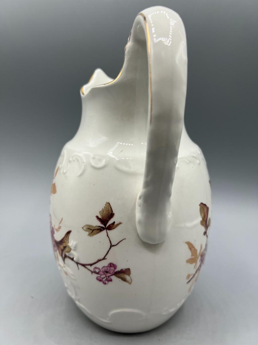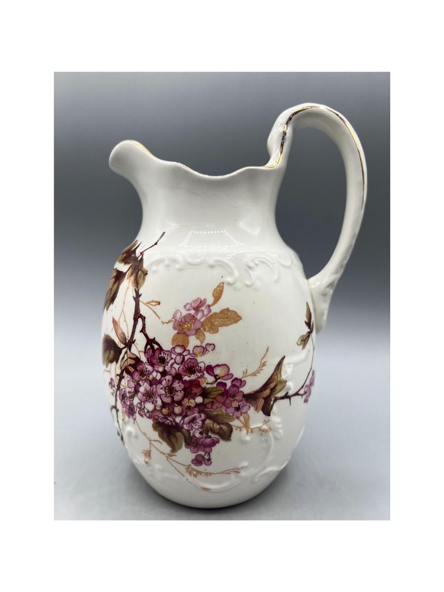There is no significant damage to the porcelain pitcher and is in overall good decorative or collectible condition. Check pictures for more details and for sizing.